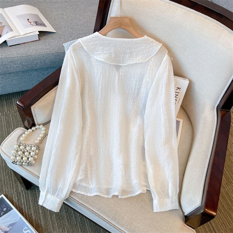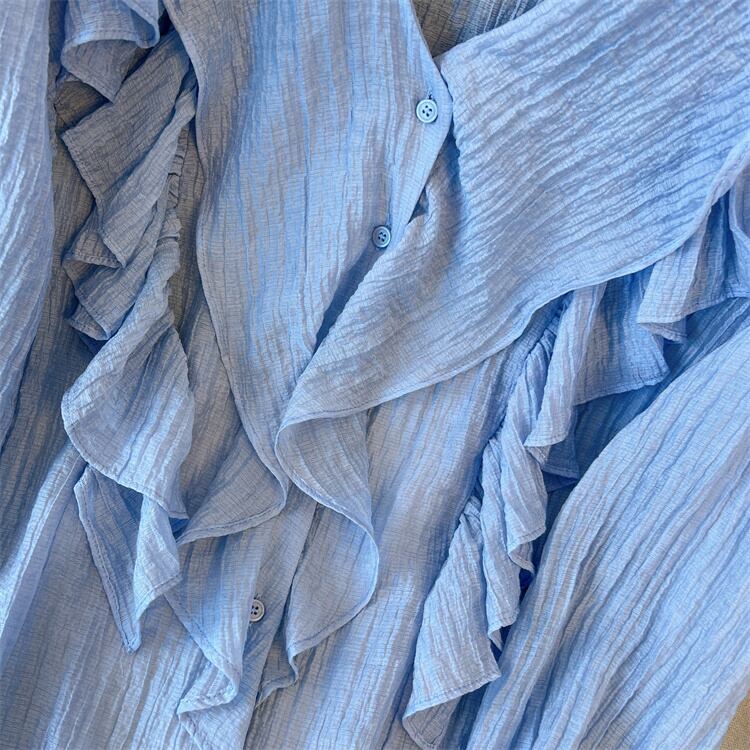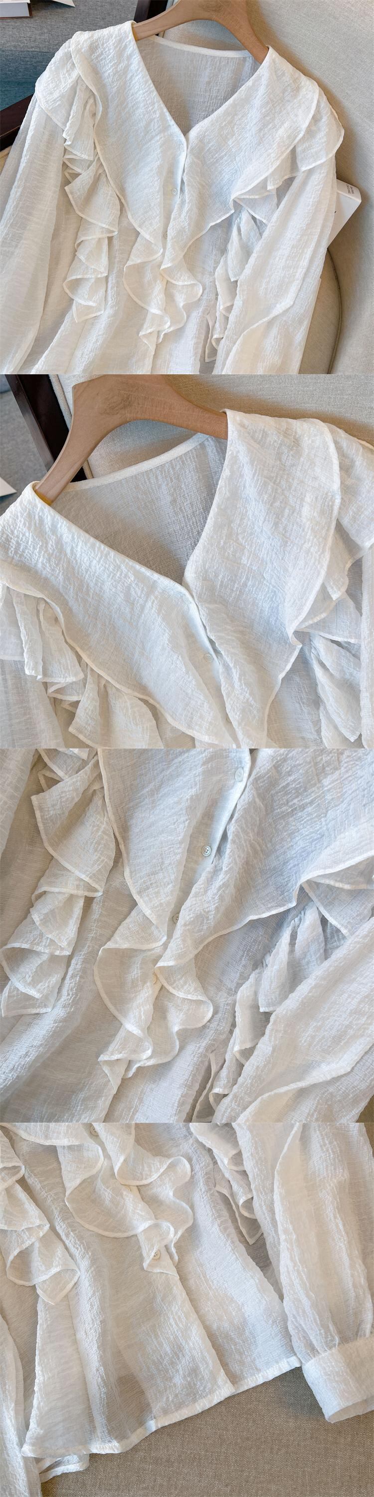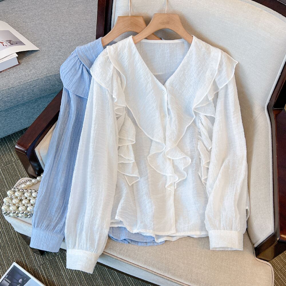 プラスサイズの婦人服 2023 春の新しいファットシスターフレンチ V ネックフリルオールマッチデザインシフォンシャツ女性 大きめサイズ スプリング 春物 Vネック 8884149142709632