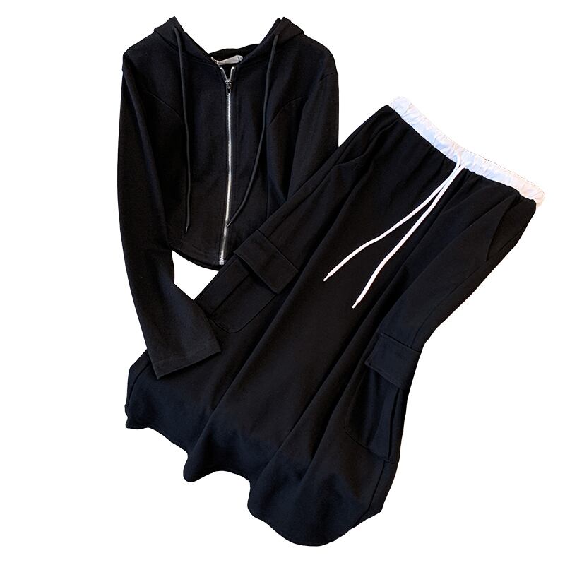 プラスサイズの婦人服 2023 春服ファットシスターズ新ジッパーカーディガンジャケット弾性ウエストスカートツーピーススーツ エラスティック 伸縮 大きめサイズ スプリング 春物 8884177490358723