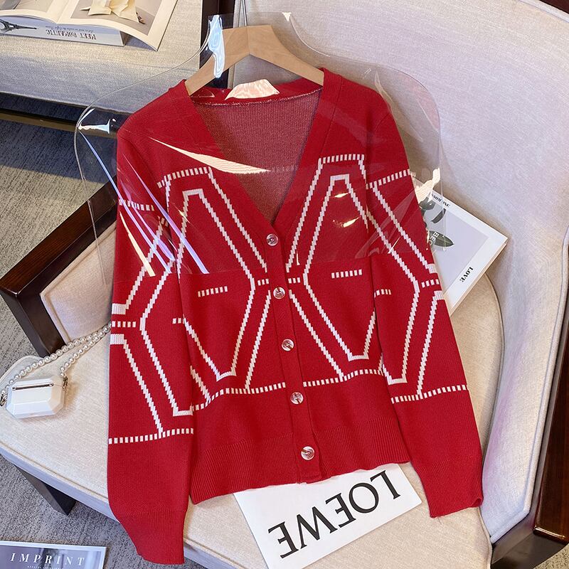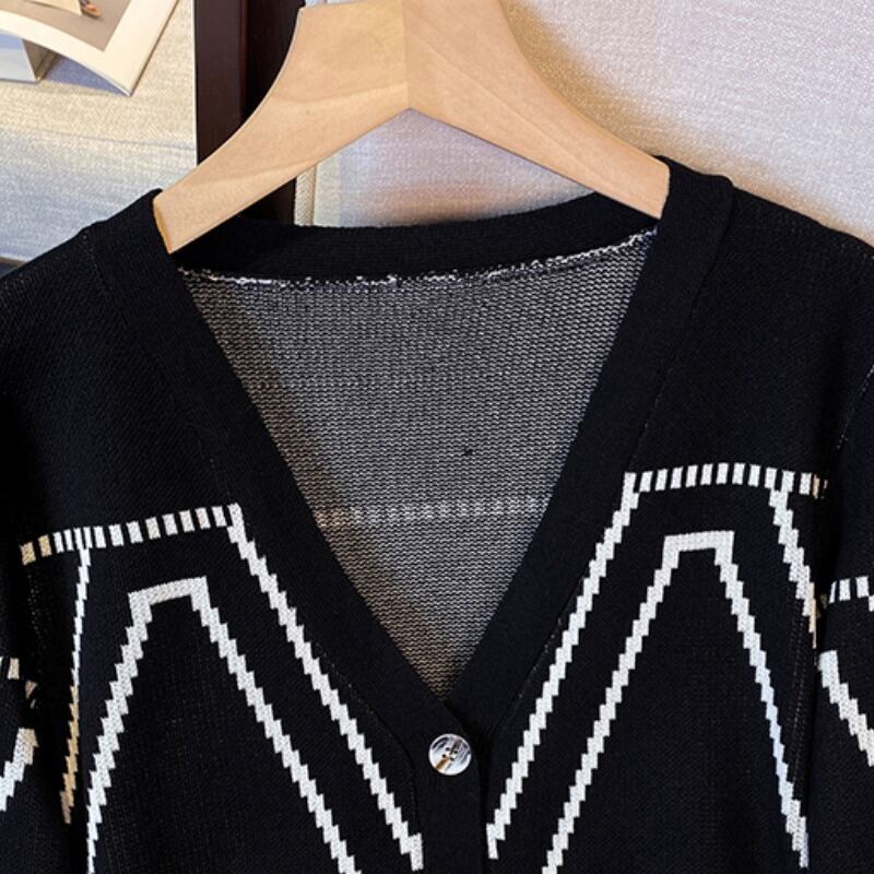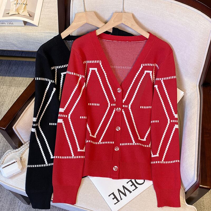 プラスサイズの婦人服 2023 春の新しいファットシスター eign スタイルのデザイン気質カーディガン V ネックニットトップ女性 大きめサイズ スプリング 春物 Vネック 8884169318198976