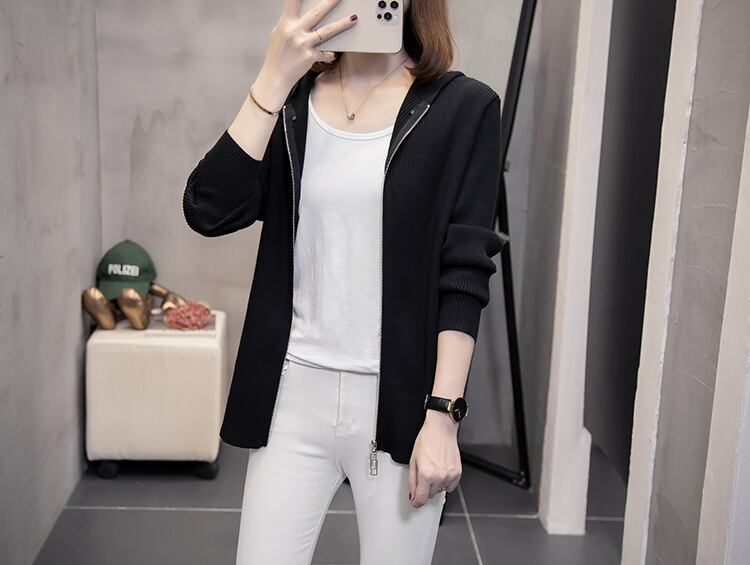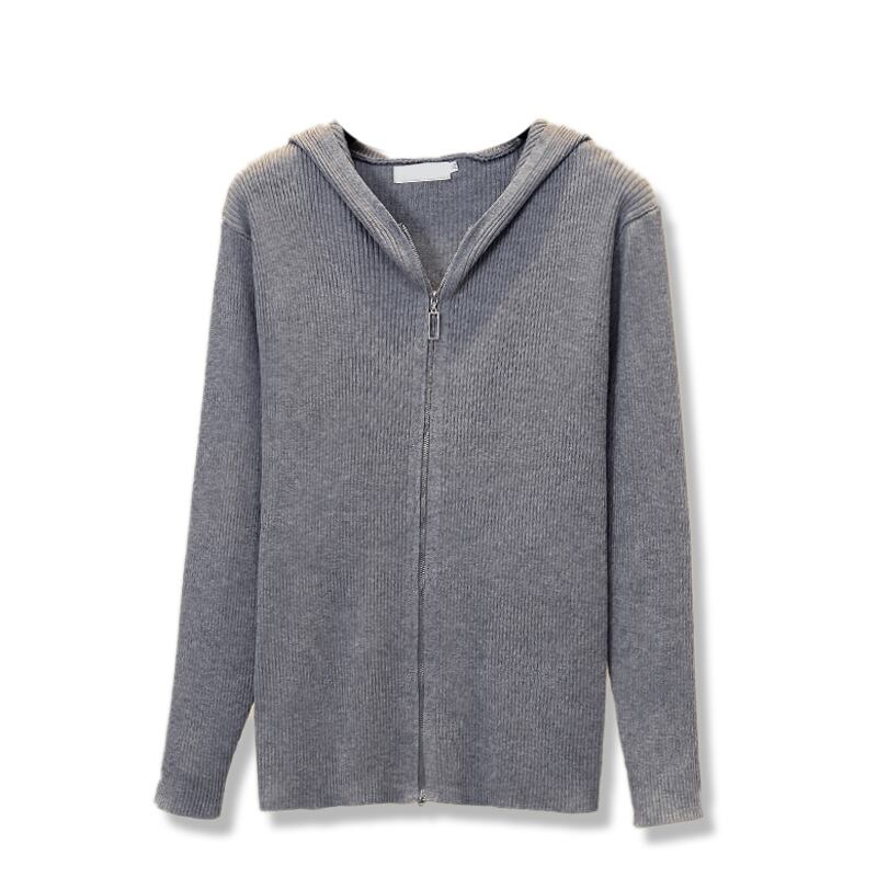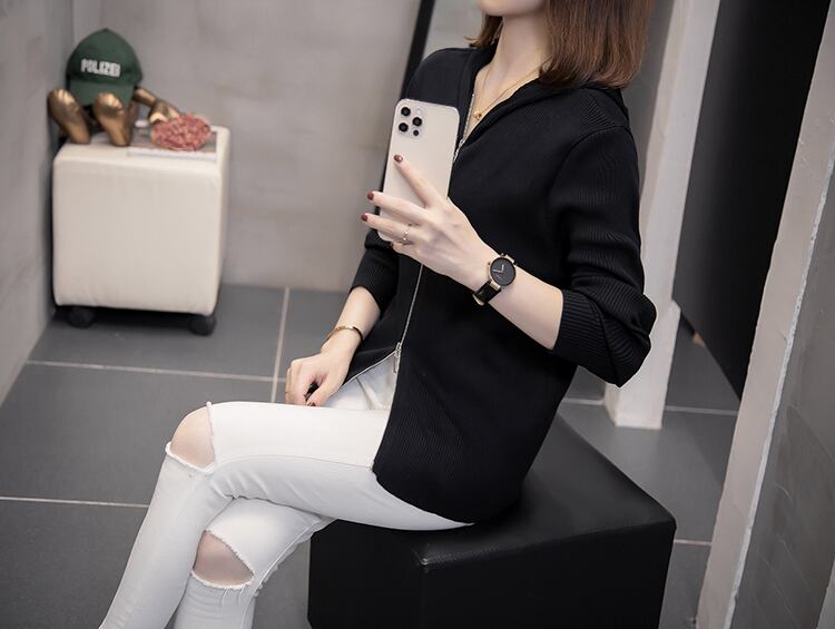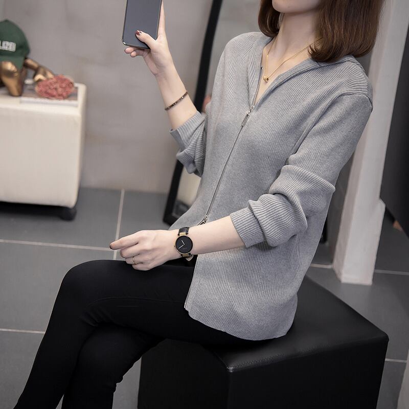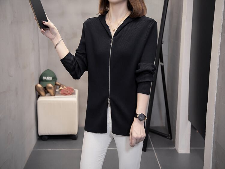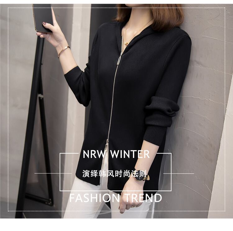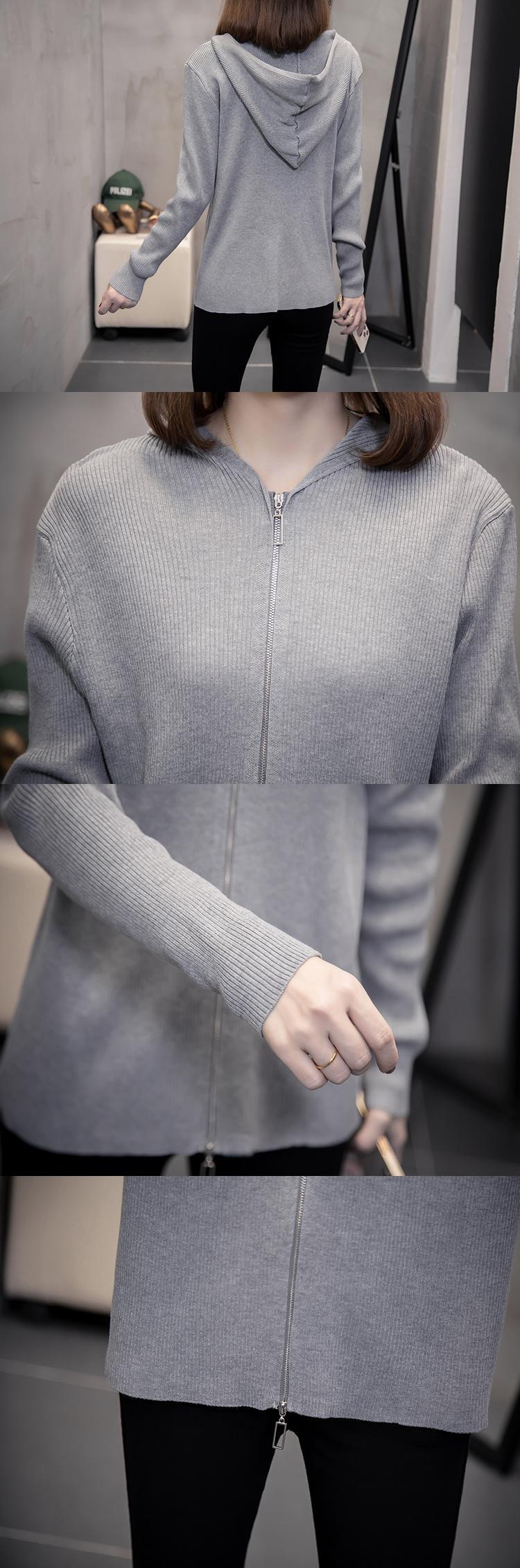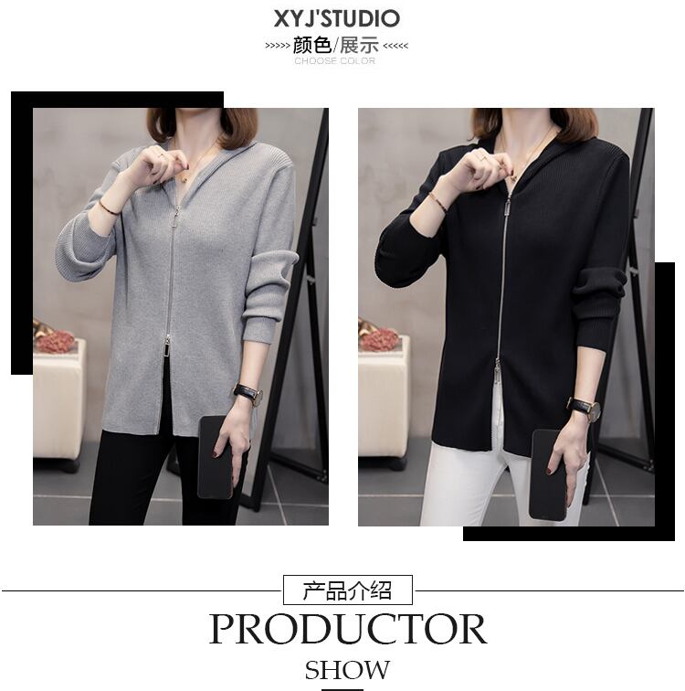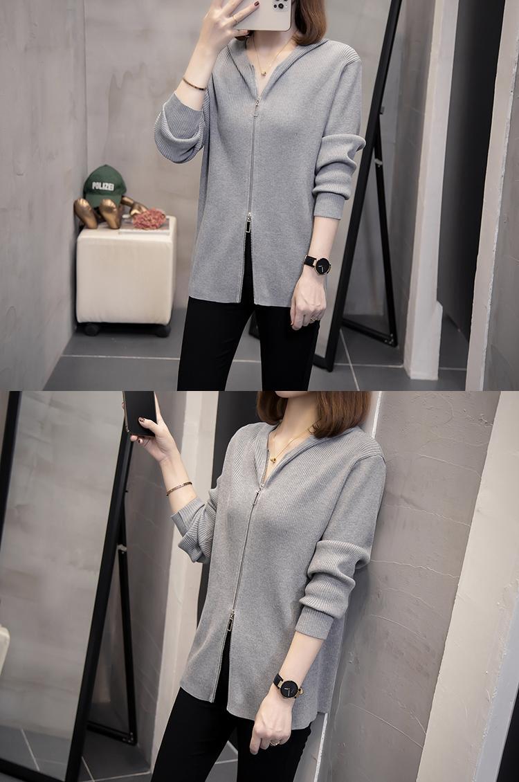プラスサイズの婦人服 2023 春の新しいファットシスター eign スタイルフード付きルーズジッパーカーディガン長袖カジュアルニット ロング 大きめサイズ スプリング 春物 8884135350436776
