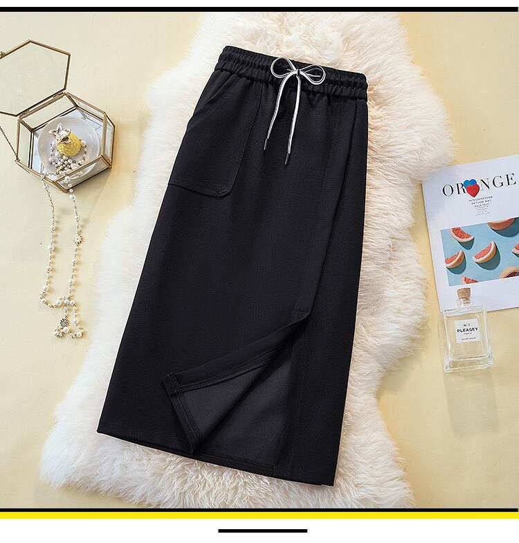 プラスサイズの婦人服 2023 春服脂肪姉妹新しい薄い弾性ウエストミッドレングススリットカジュアルスカートの女性 エラスティック 伸縮 大きめサイズ スプリング 春物 8884141504421861