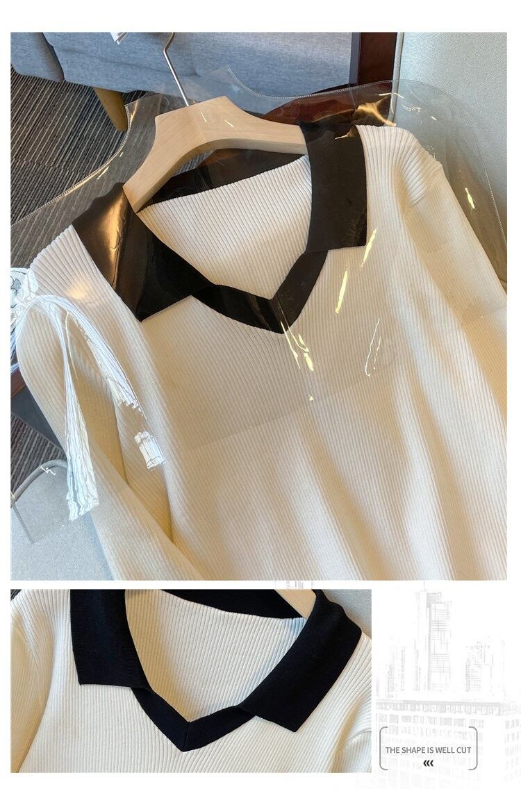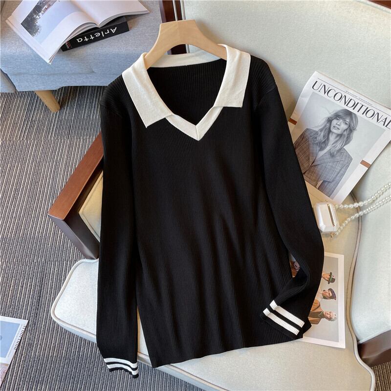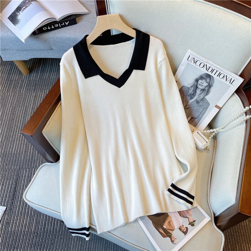 大きいサイズの婦人服 2023 春の新しいスタイルの太った妹は、より薄くて年齢を減らすように見えます シック 対照的な色 多用途のカジュアルな長袖セーター ロング 大きめサイズ スプリング 春物 8884190185008806