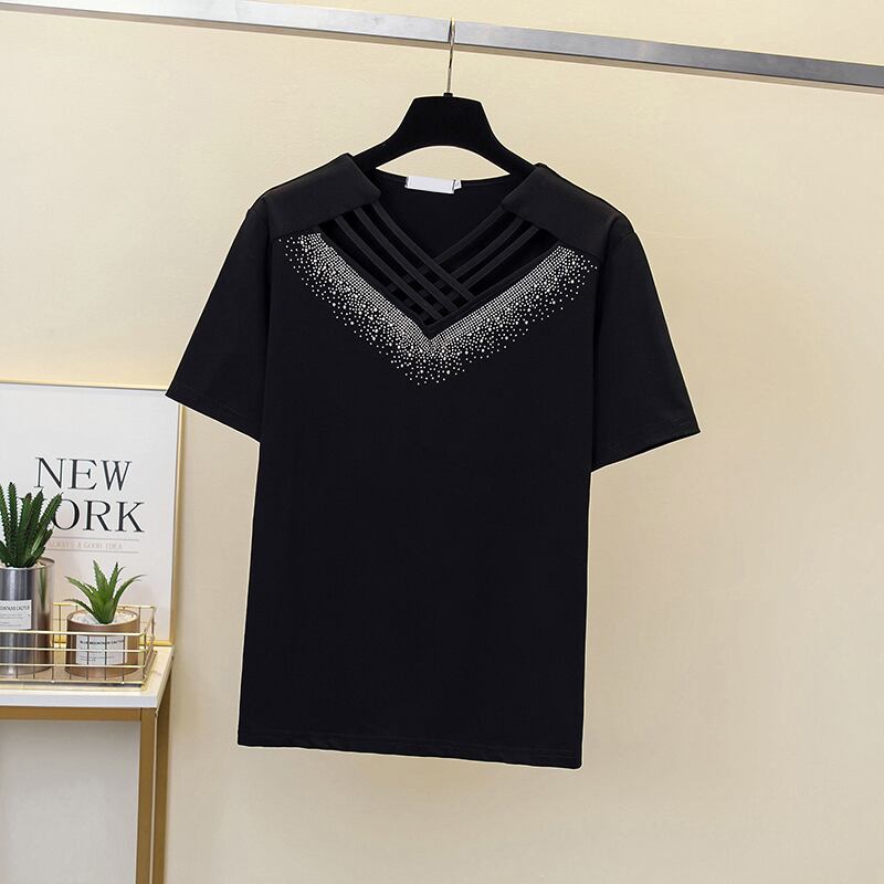 大きいサイズの婦人服 2023 夏新ファットシスターデザインダイヤモンドファッションスリム半袖 tシャツ女性 大きめサイズ サマー 夏物 8884182251816843