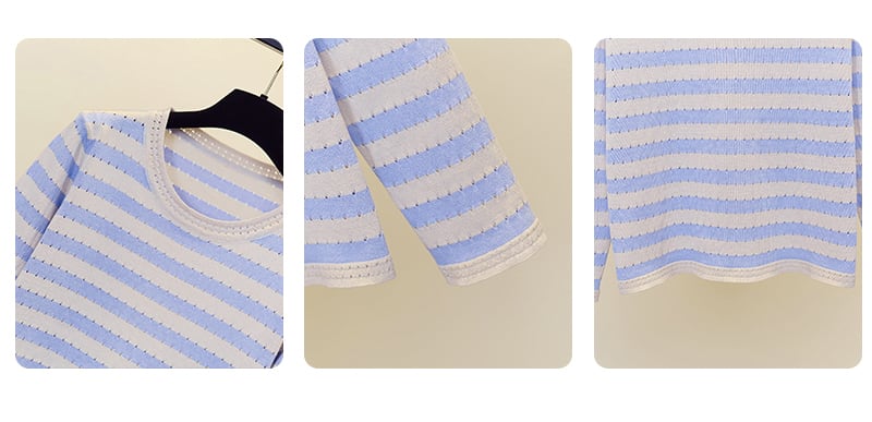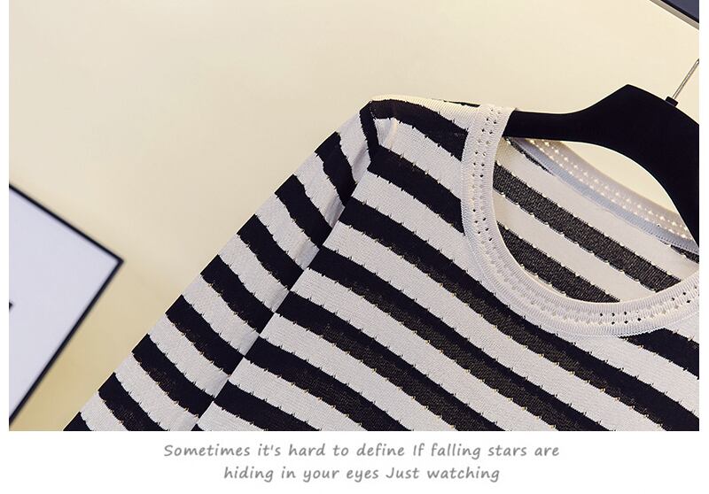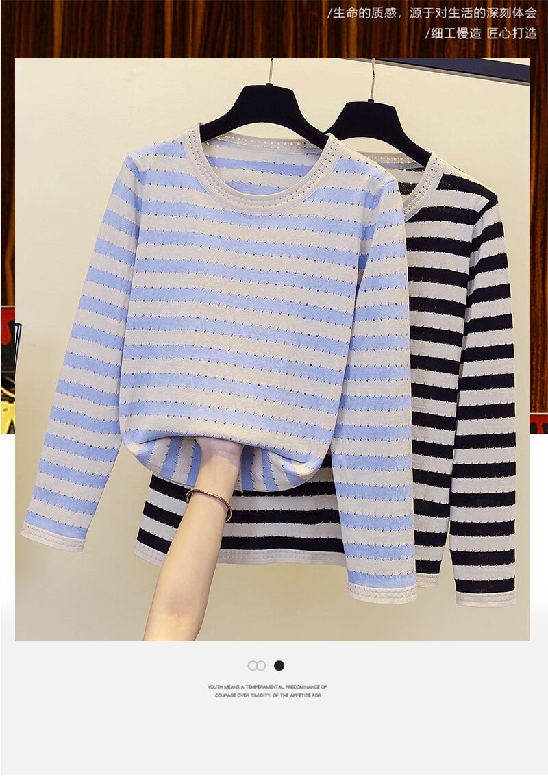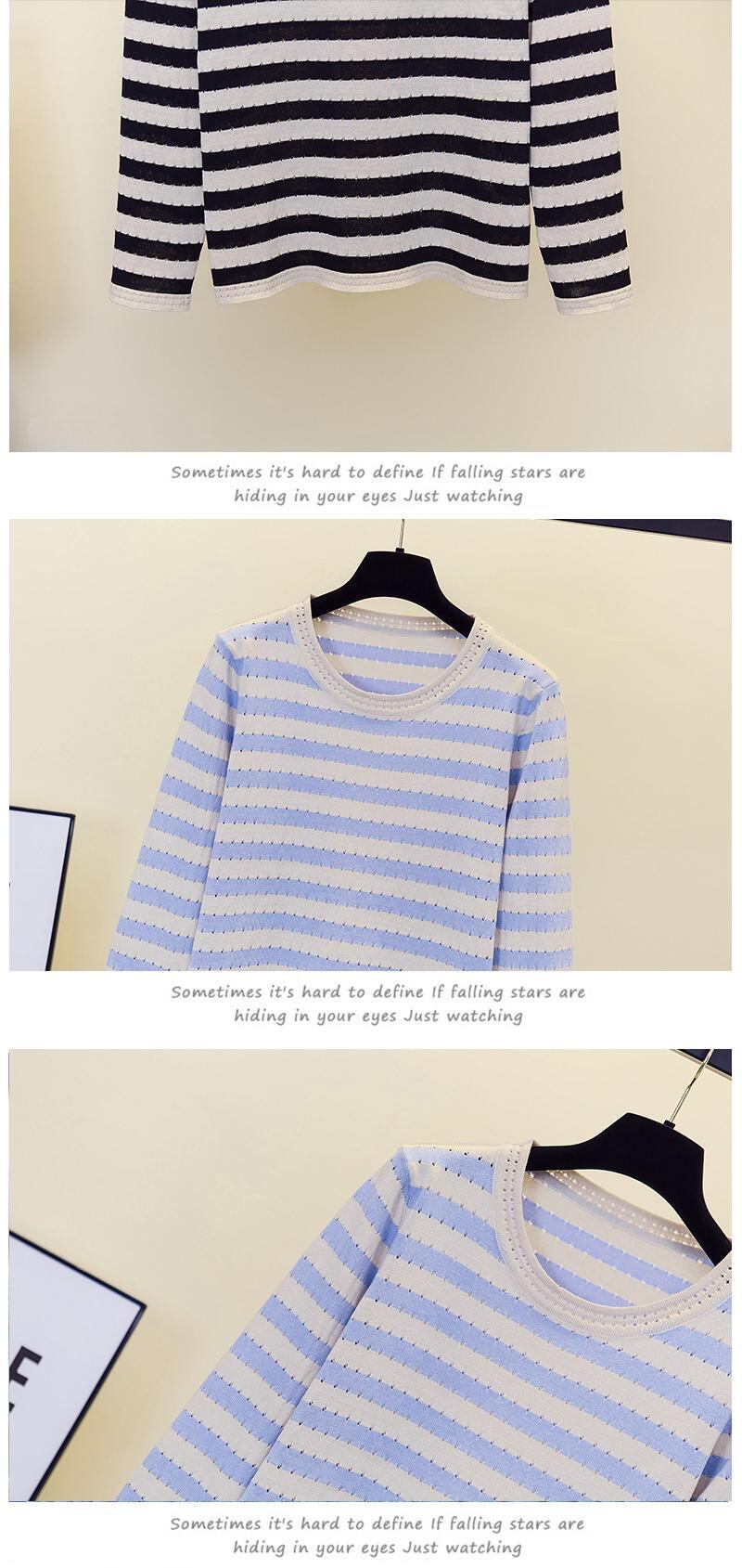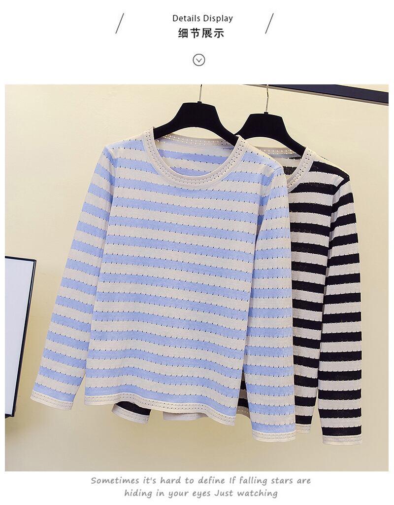 大きいサイズの婦人服 2023 春服の新しい太った姉妹痩身長袖ストライプ中空ストライプ デザイン センス セーター ロング 大きめサイズ スプリング 春物 8884190063014670