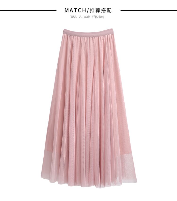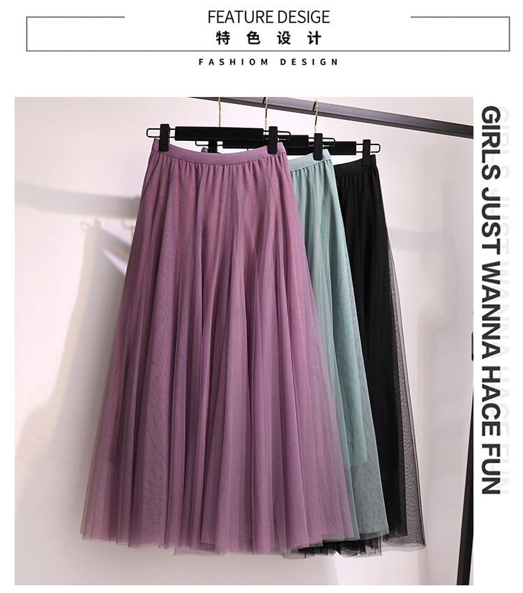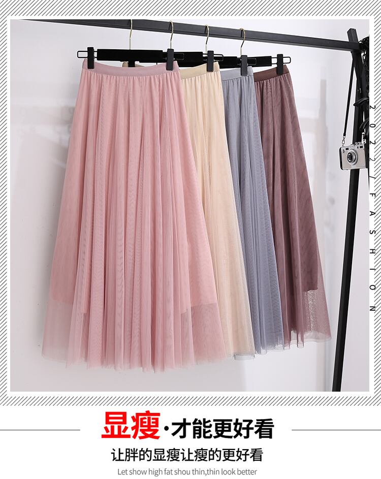 大きいサイズの婦人服 2023 春服脂肪姉妹新しいハイウエストオールマッチメッシュスカート超妖精ビッグスイングプリーツスカート 大きめサイズ スプリング 春物 8884141082916845