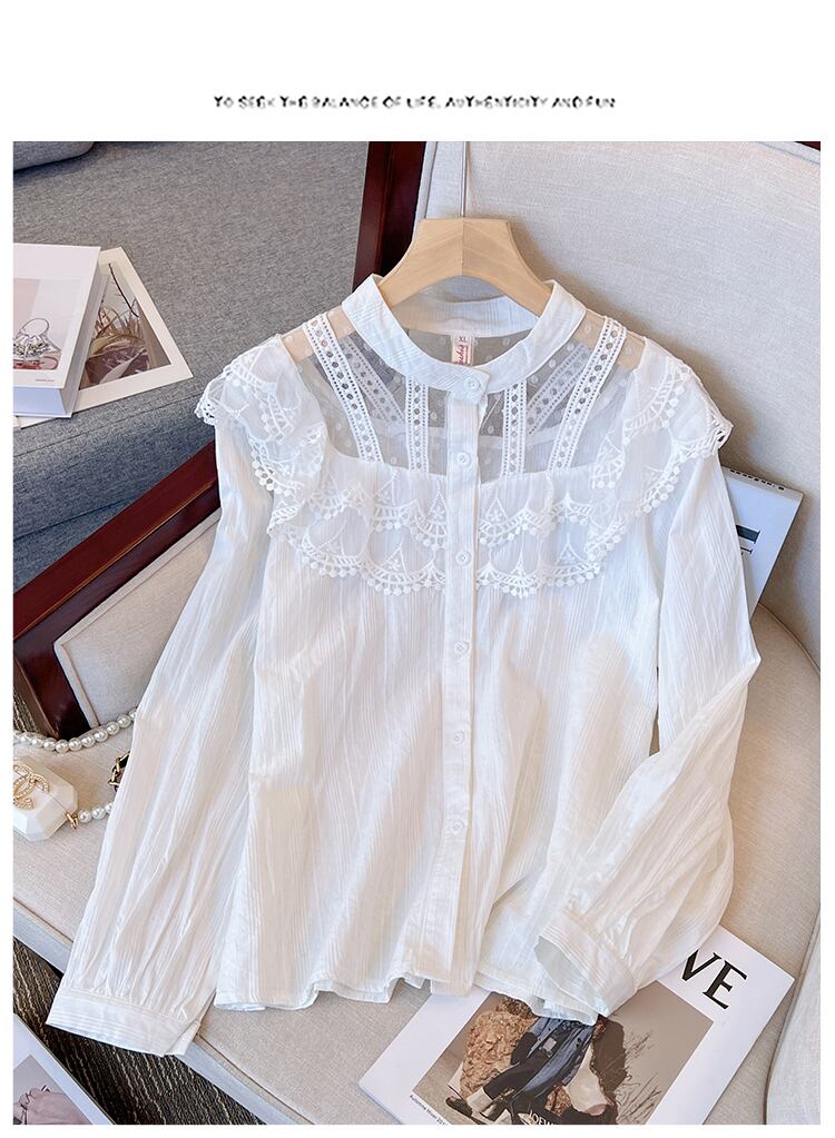 プラスサイズの婦人服 2023 春服脂肪姉妹新シャツ eign スタイルファッションレース底入れシャツトレンディトップス女性 大きめサイズ スプリング 春物 8884146523909432