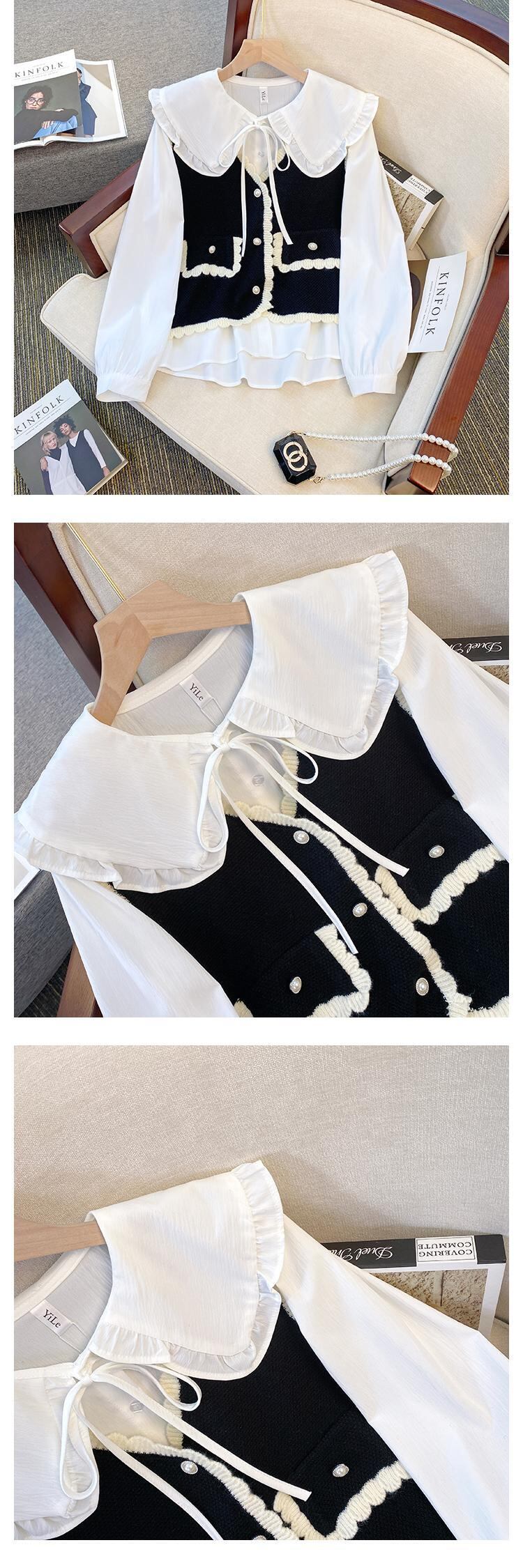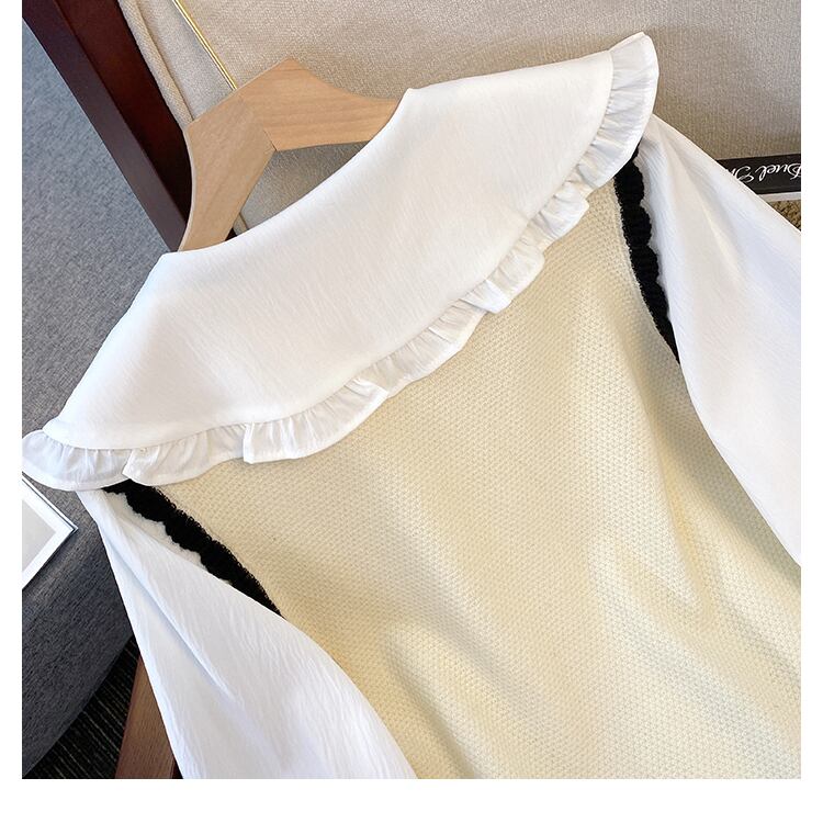 大きいサイズの婦人服 2023 春服脂肪姉妹新しい eign スタイル甘い人形の襟シャツ レトロ ベスト 2 点セット 大きめサイズ 大人ガーリー スウィート キュート カジュアル スプリング 春物 8884152625912712
