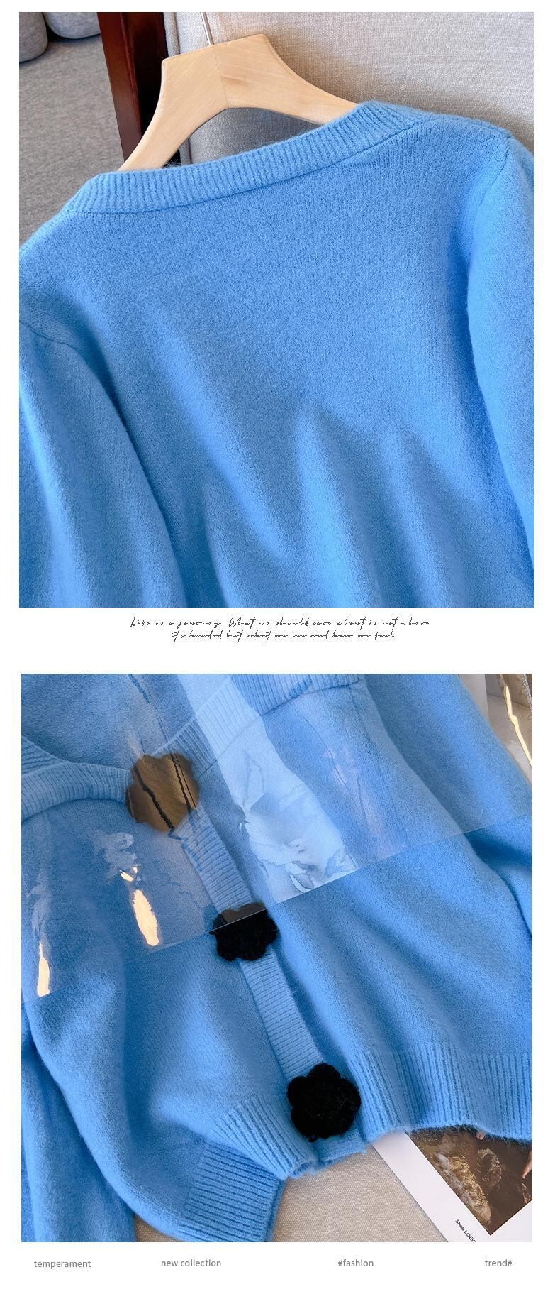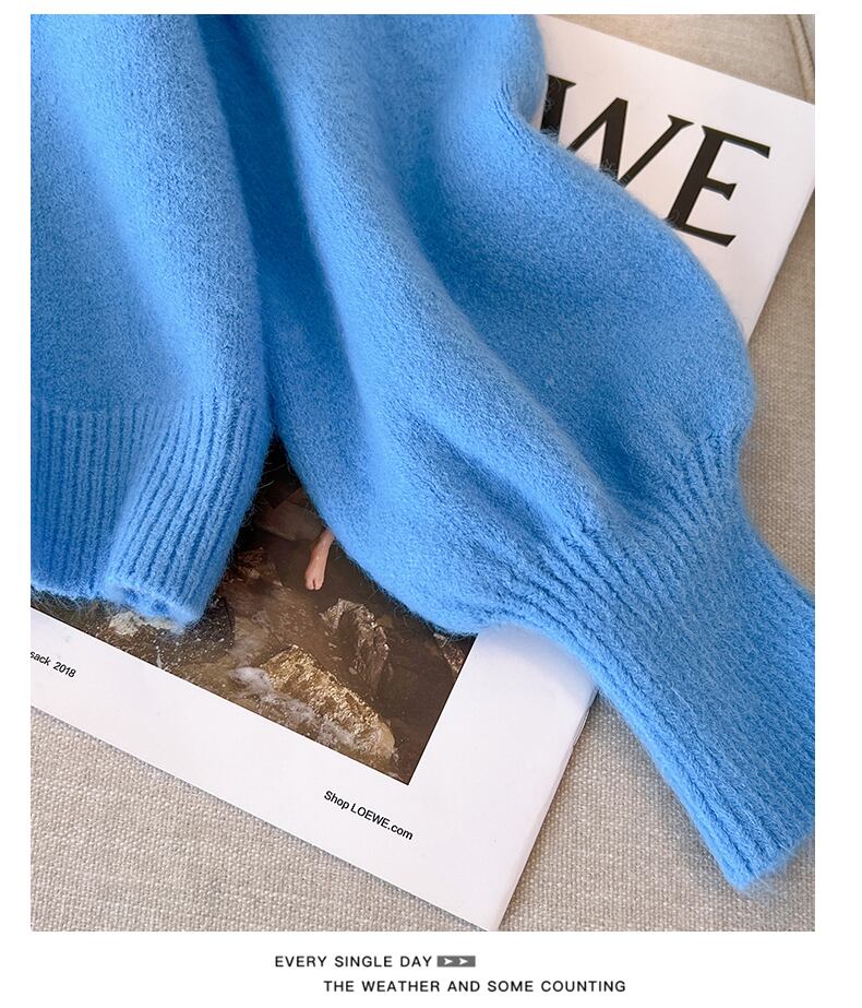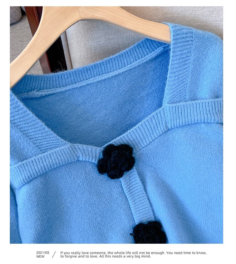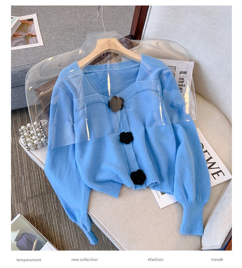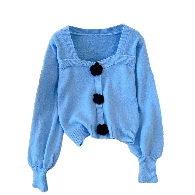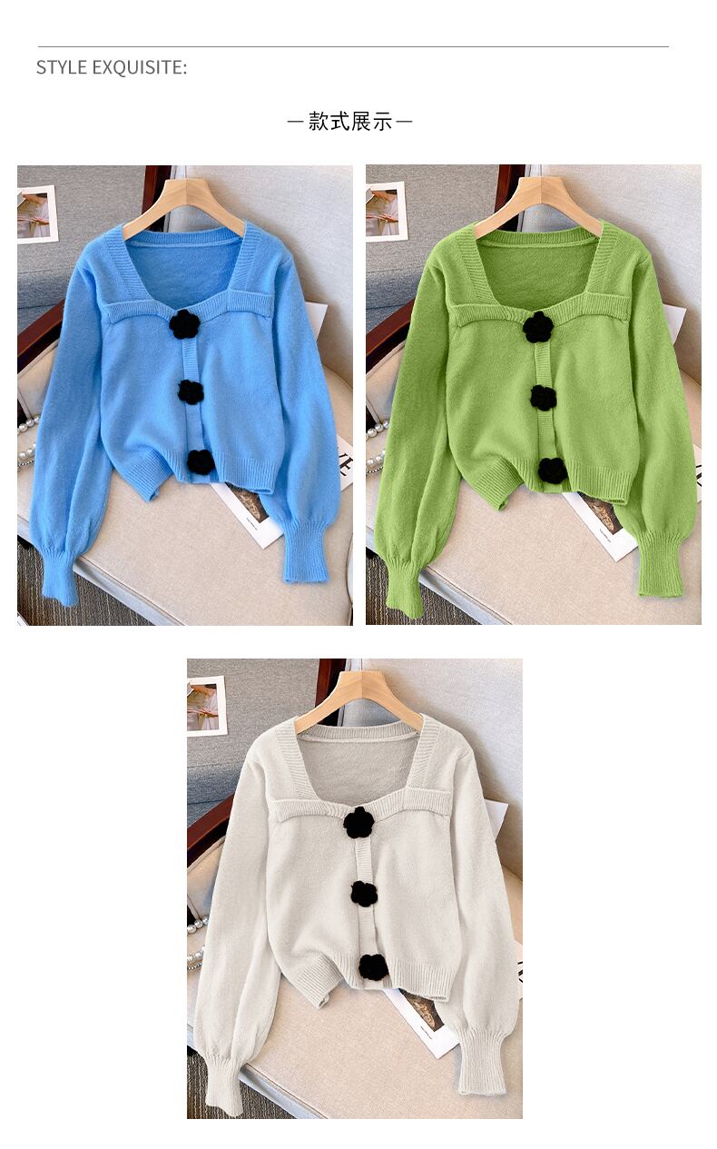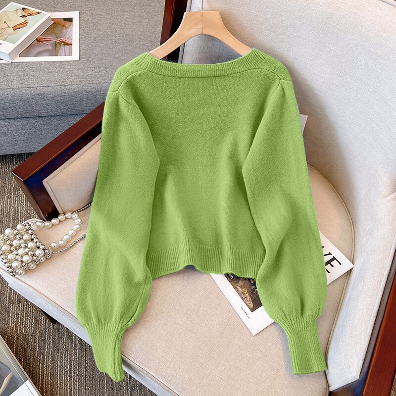 プラスサイズの婦人服 2023 ファットシスター春の新ファッションショートトップレトロスクエアカラーニットランタンスリーブセーター 大きめサイズ スプリング 春物 スクウェア 8884125713190674