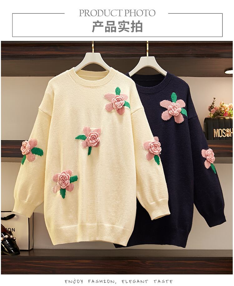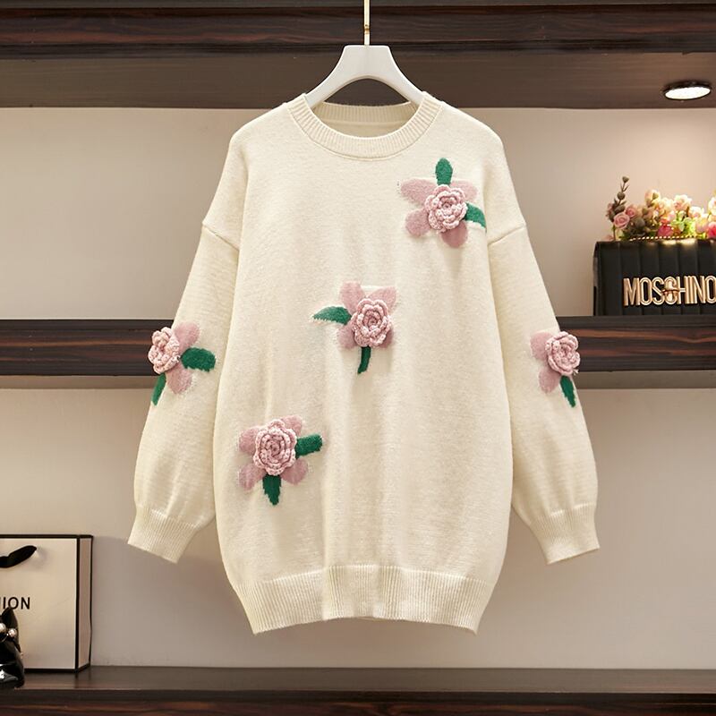 プラスサイズの婦人服 2023 トレンディな女性の春の新しいスタイルの太った姉妹のレジャーとスリムな気質の年齢を減らす長袖のオールマッチニットセーター ロング 大きめサイズ スプリング 春物 8884193794316879
