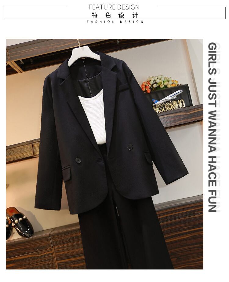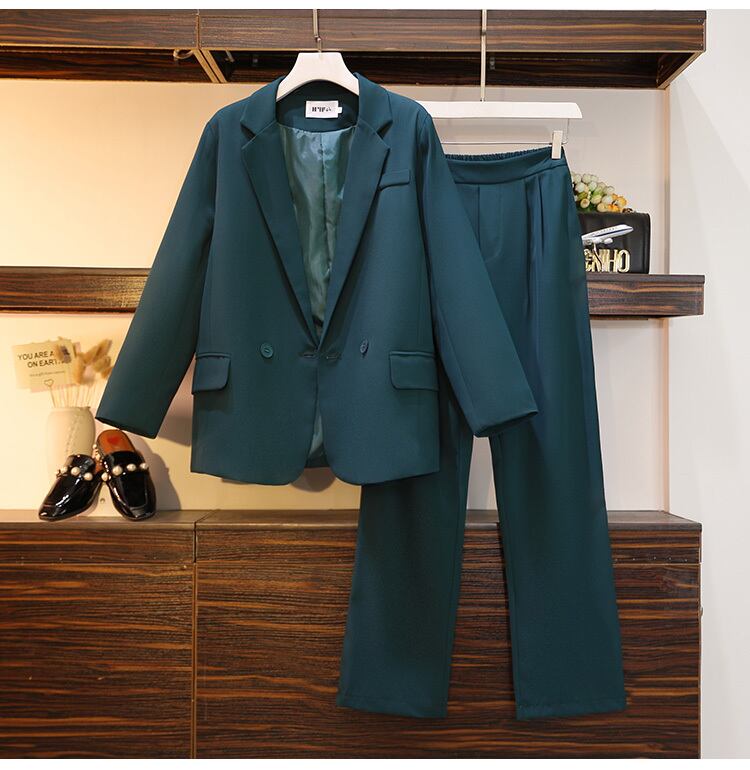 プラスサイズの婦人服 2023 ファットシスター春の新ファッション緩い肉カバーリングスーツ弾性ウエストストレートパンツ 2 点セット エラスティック 伸縮 大きめサイズ スプリング 春物 8884152378839981