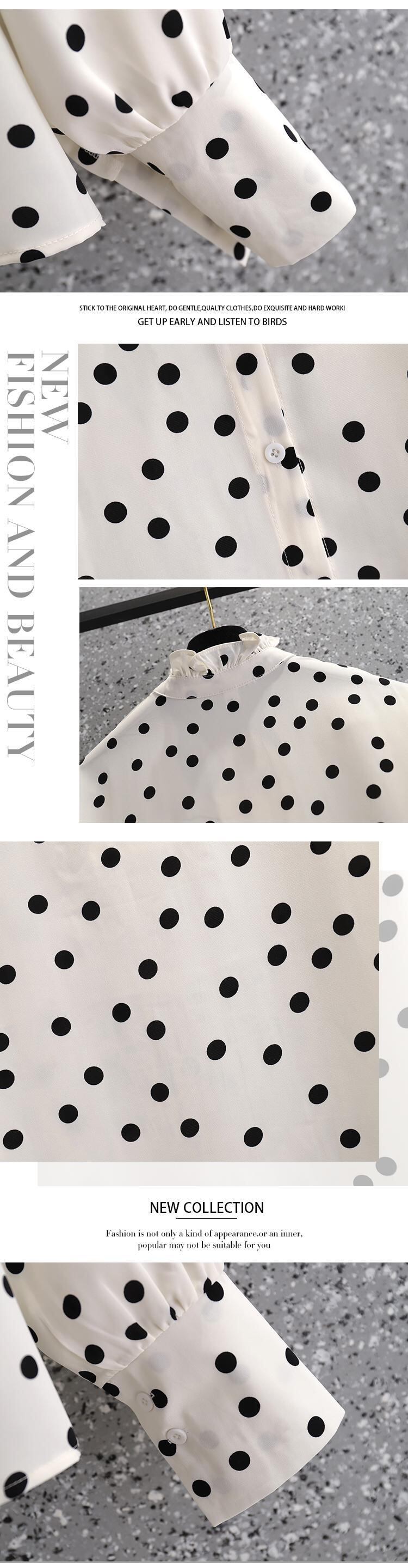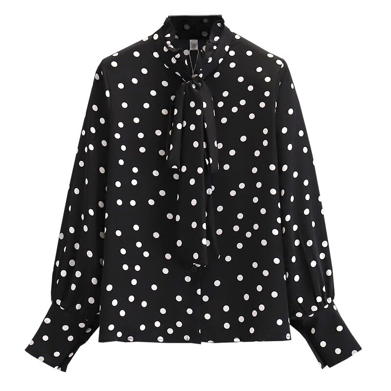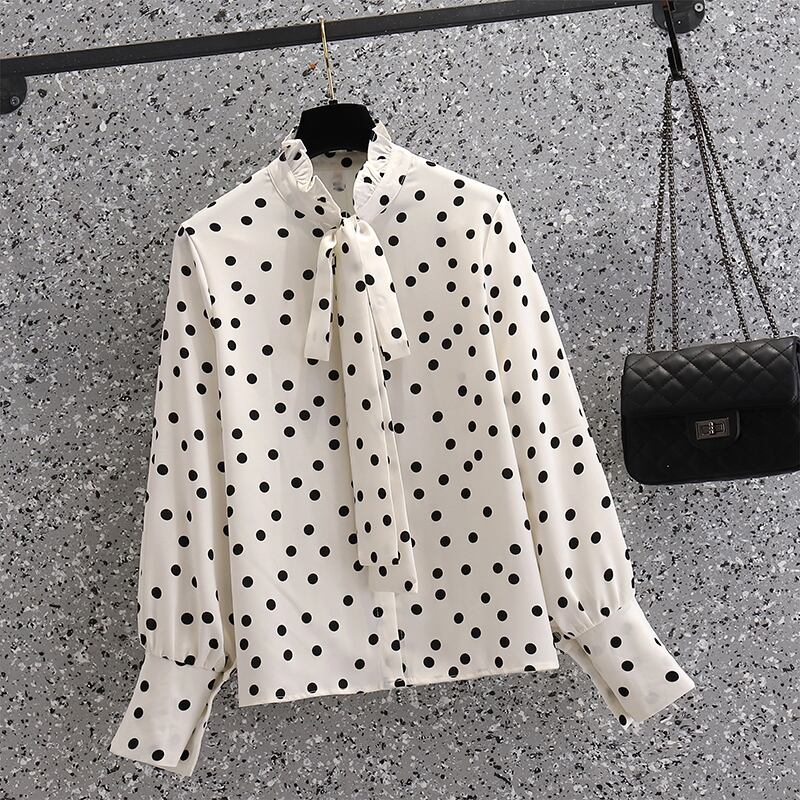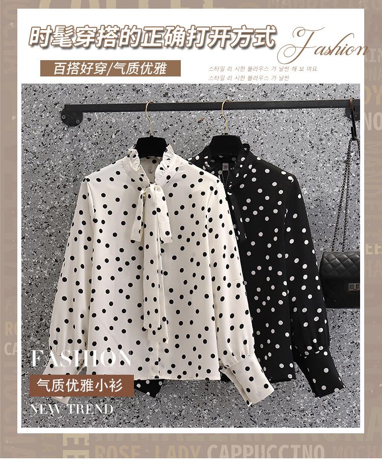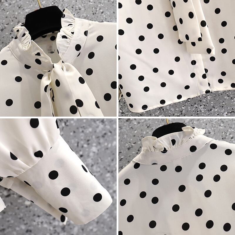 プラスサイズの婦人服 2023 春服ファットシスターズ新しいファッション eign スタイルルーズな年齢を減らすネクタイ水玉長袖シャツ ロング 大きめサイズ スプリング 春物 888418939807406