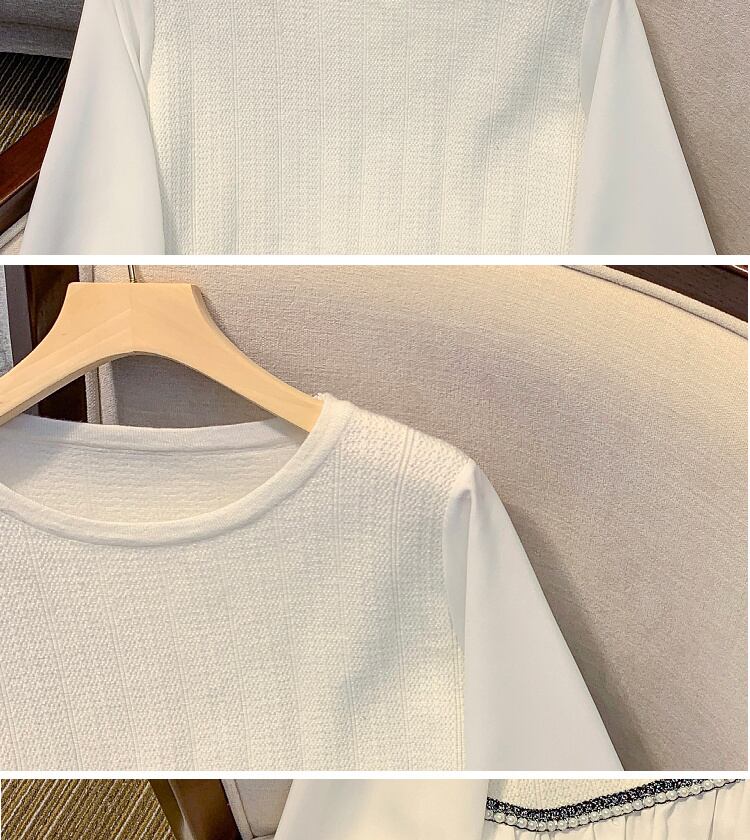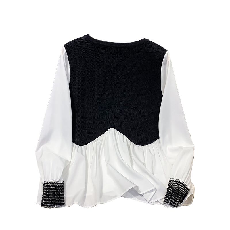 プラスサイズの婦人服 2023 春服脂肪姉妹新しいスタイルルーズで薄いレーススプライシング偽ツーピーストップス女性 大きめサイズ スプリング 春物 8884159017721540