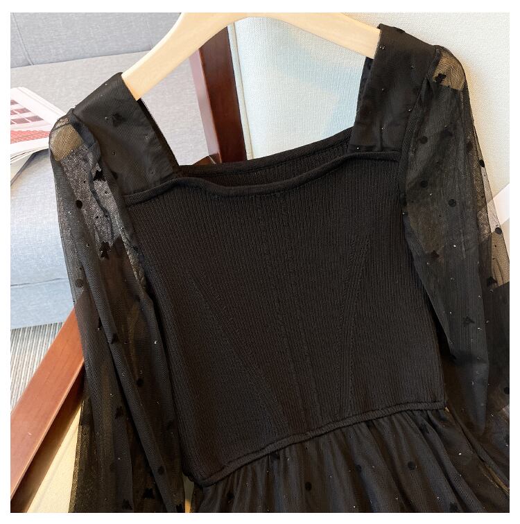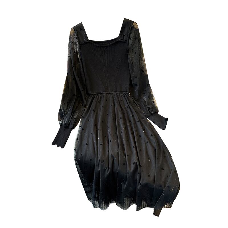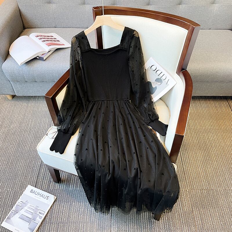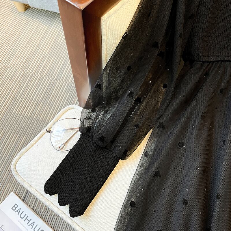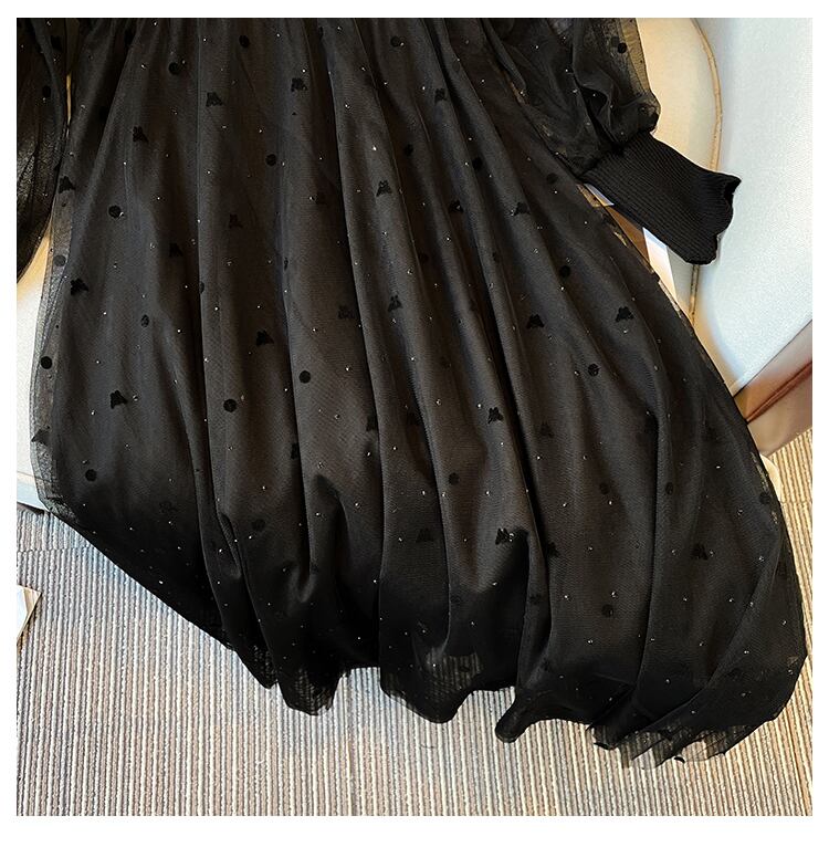 プラスサイズの婦人服 2023 ファットシスター春の新しい西洋スタイルのウエストスパンコールダイヤモンドメッシュステッチ長袖ドレス ロング 大きめサイズ スプリング 春物 8884114030572218