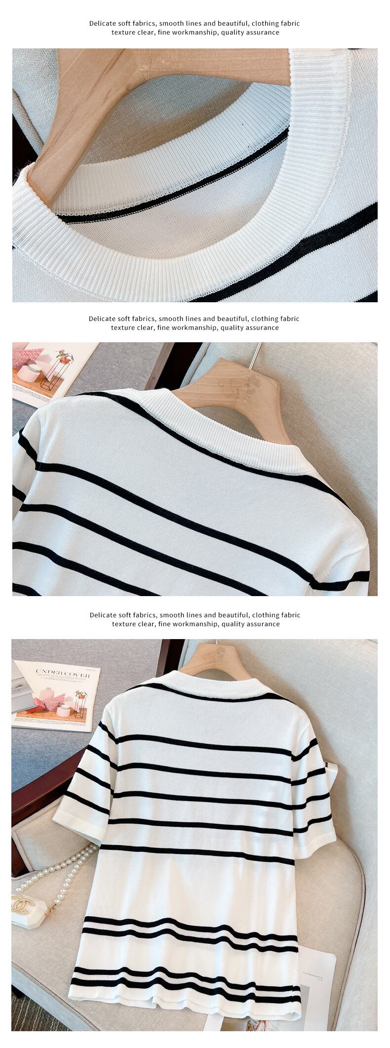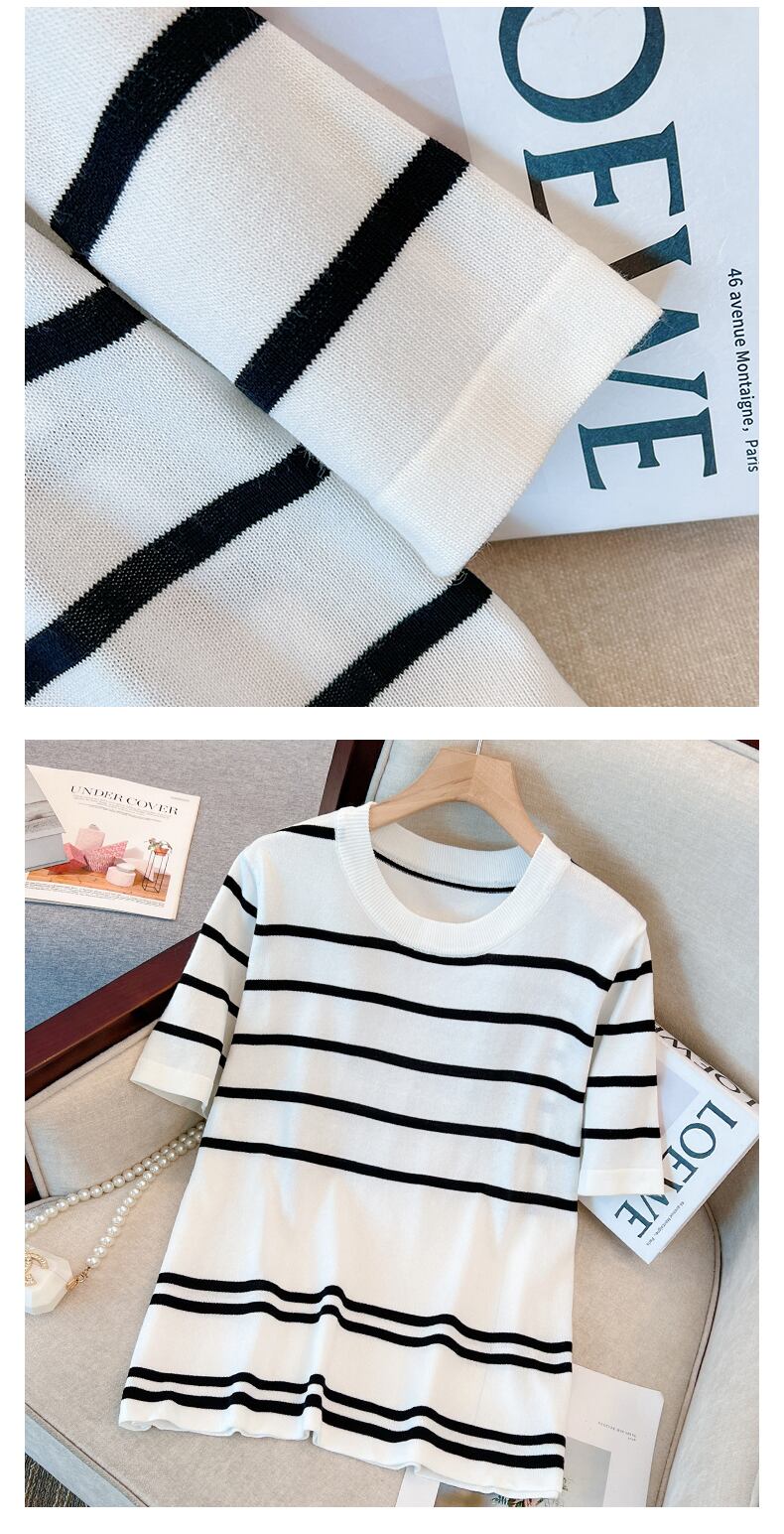 大きいサイズの婦人服2023夏新作ファットシスターゆったり薄手のストライプシックで薄手の丸首カバー腹Tシャツ 大きめサイズ サマー 夏物 Oネック 8884162594776794