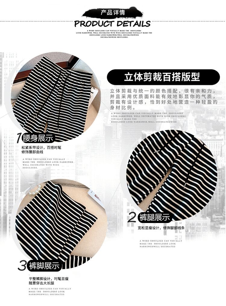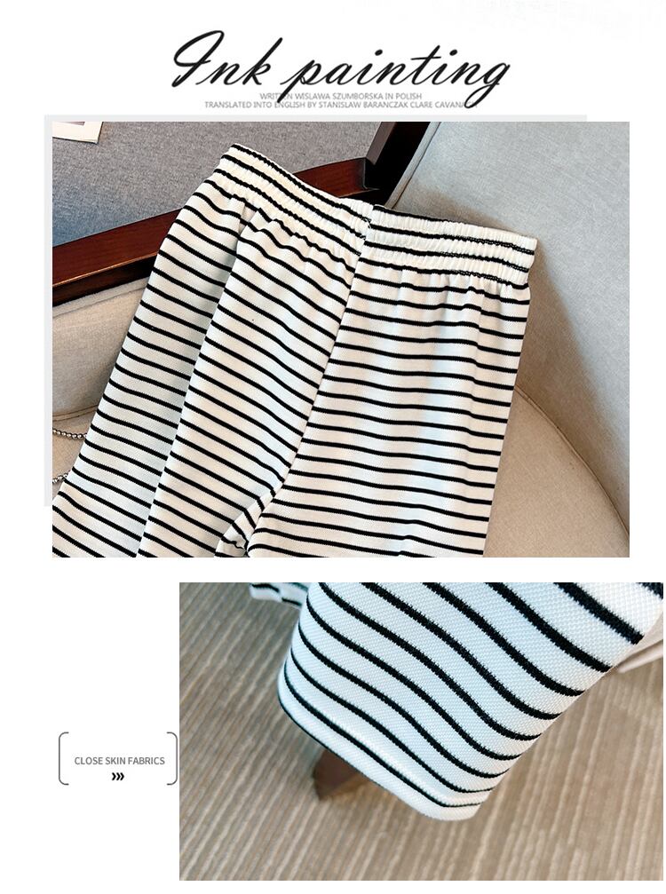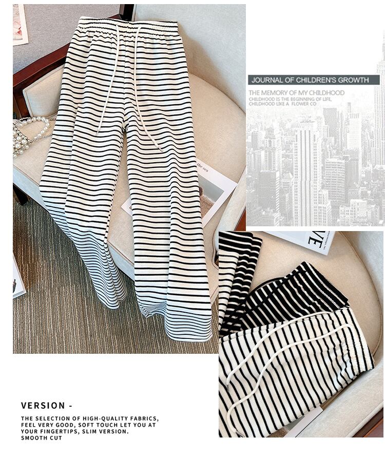 大きいサイズの婦人服 2023 春服脂肪姉妹新しいスリムな気質多目的黒と白のストライプ コントラスト カラー ワイドレッグ パンツ女性 ホワイト ブラック 大きめサイズ スプリング 春物 8884178643632921