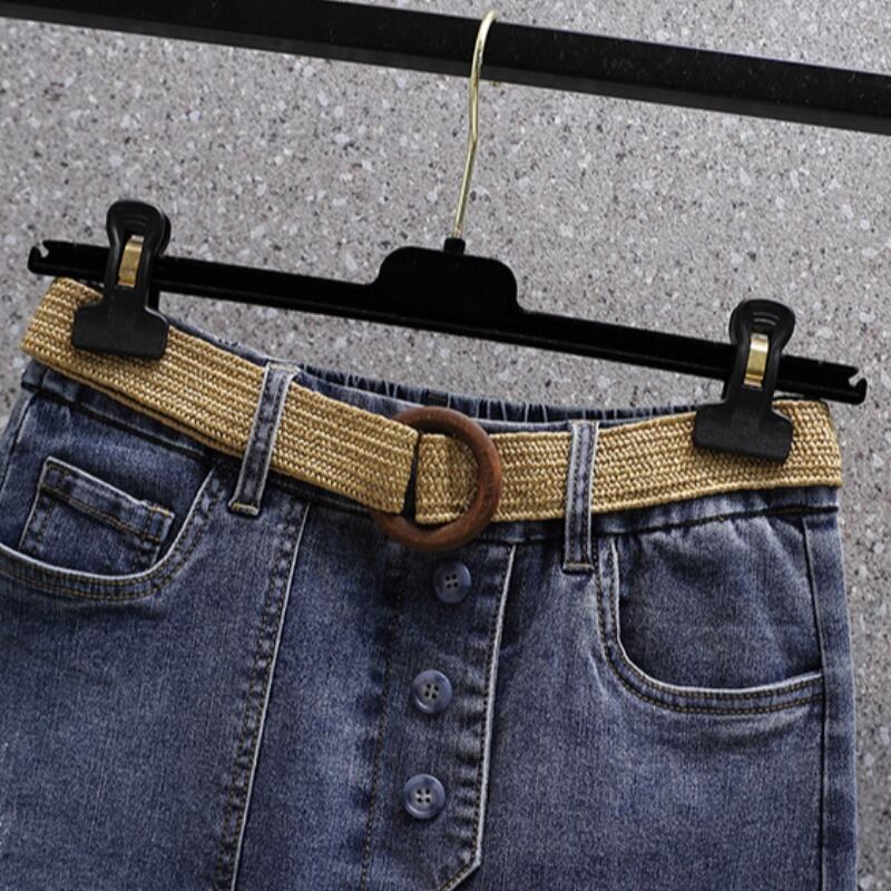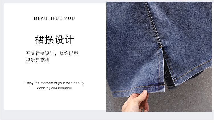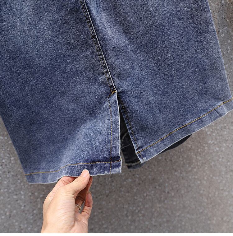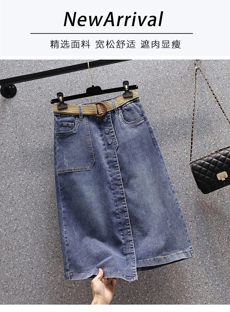 プラスサイズの婦人服 2023 夏の新しいファットシスターハイウエスト弾性弾性ウエストオールマッチヒップカバーデニムスカート ハイウェスト エラスティック 伸縮 大きめサイズ サマー 夏物 8884151646540019