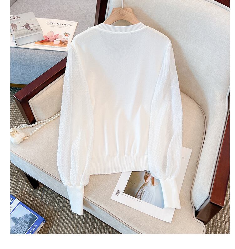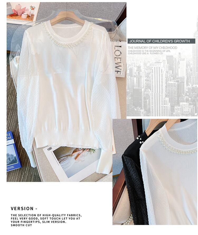 プラスサイズの婦人服 2023 春服脂肪姉妹新痩身重工業ビーズステッチ偽ツーピースニットトップス女性 大きめサイズ スプリング 春物 8884197832491896