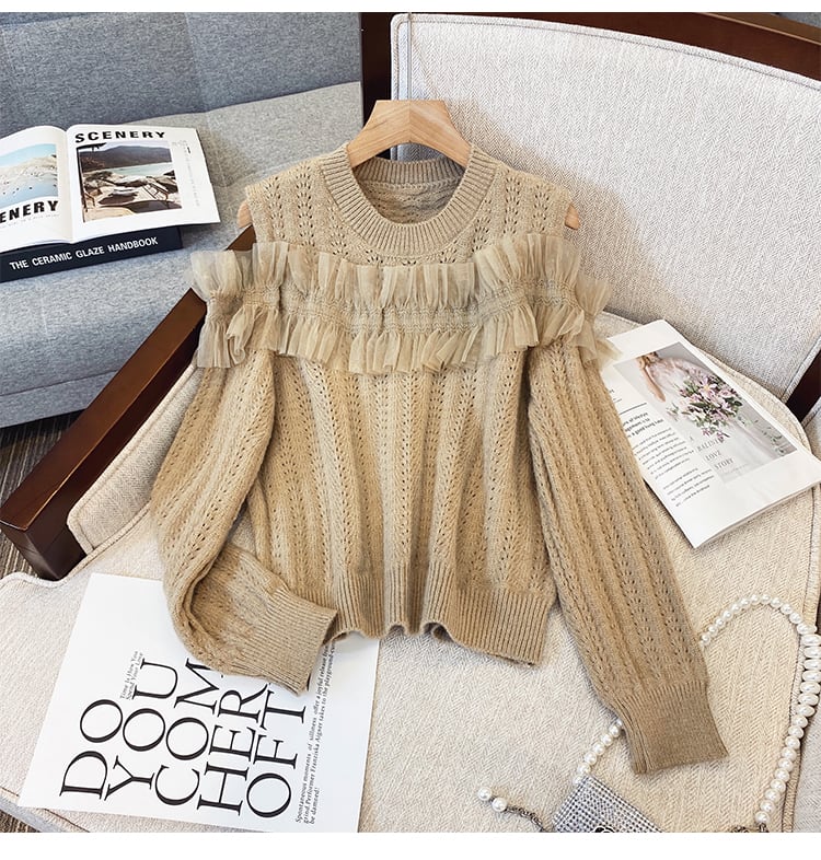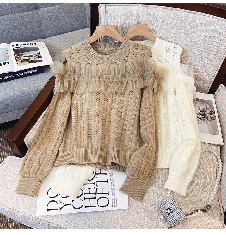 プラスサイズの婦人服 2023 トレンディな女性の春の新しい脂肪姉妹バージョンのメッシュスプライシング緩い痩身ファッションニットセーターの女性 大きめサイズ スプリング 春物 8884182694453523