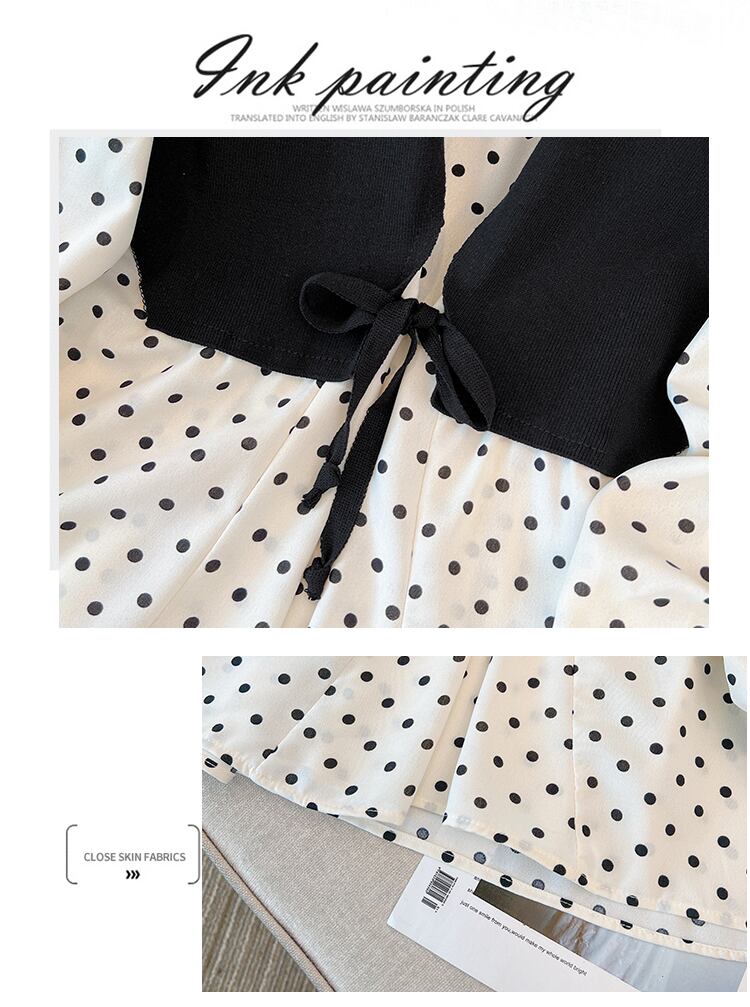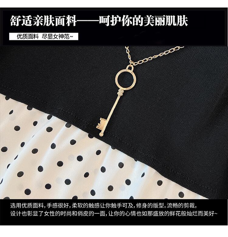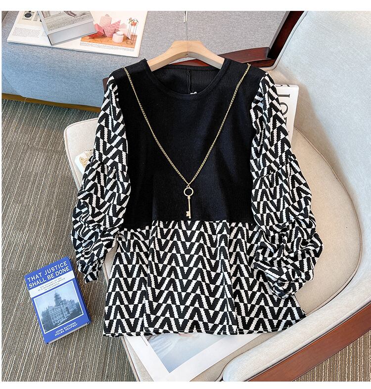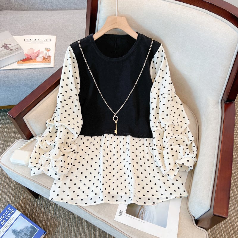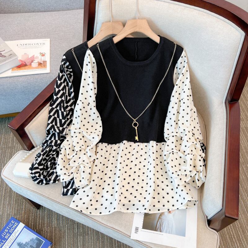 プラスサイズの婦人服 2023 春服脂肪姉妹新しい痩身と年齢を減らす折り目ステッチ偽のツーピース ニット トップス女性 大きめサイズ スプリング 春物 8884120797348298