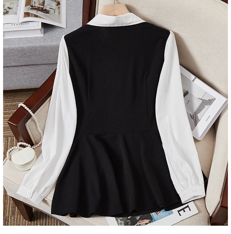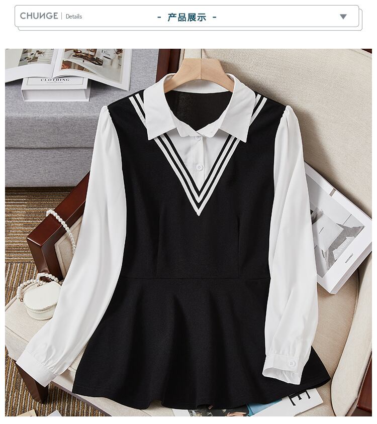 プラスサイズの婦人服 2023 春の新しい太った姉妹の気質年齢を減らすフェイク ツーピース ウエスト長袖シックなカジュアル シャツ ロング 大きめサイズ スプリング 春物 8884180274068839