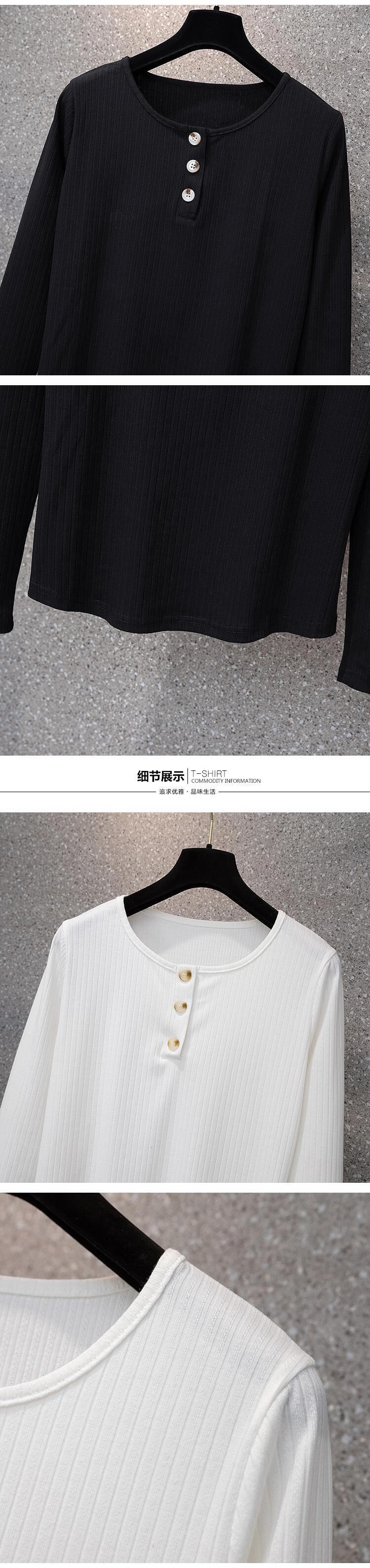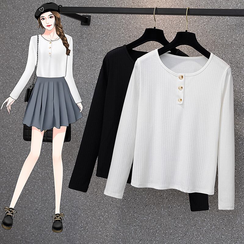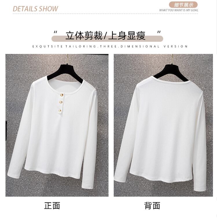 大きいサイズの婦人服 2023 春の新しいファット シスター eign スタイル カジュアル オールマッチ ラウンド ネック長袖気質ボトムス シャツ ロング 大きめサイズ スプリング 春物 Oネック 8884120069514784