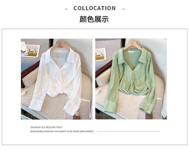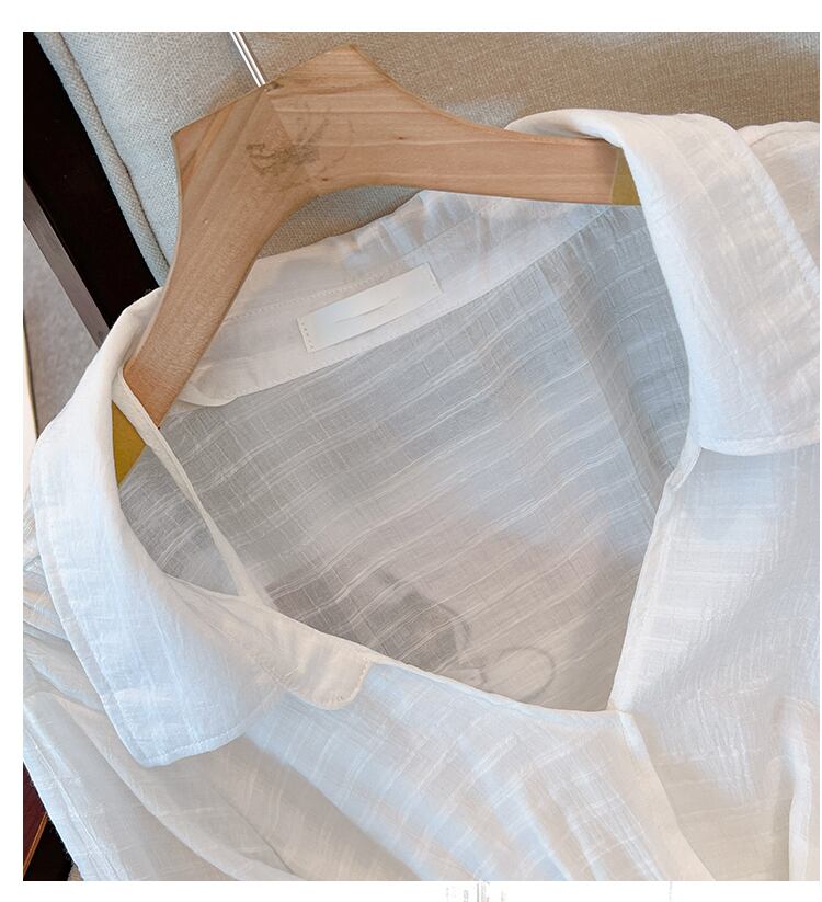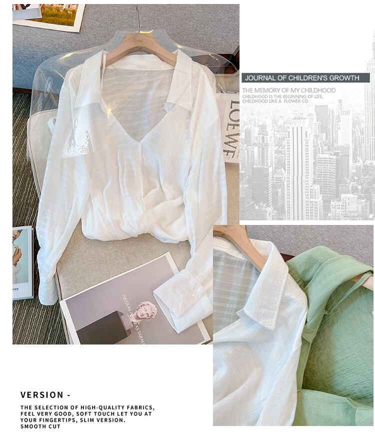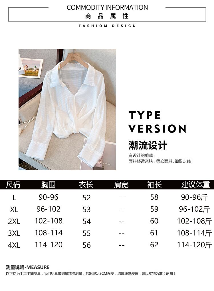 大きいサイズの婦人服 2023 春服脂肪姉妹新しい微透性長袖日焼け止めシャツ緩い空調シフォンシャツ女性 ロング 大きめサイズ スプリング 春物 8884133681176995