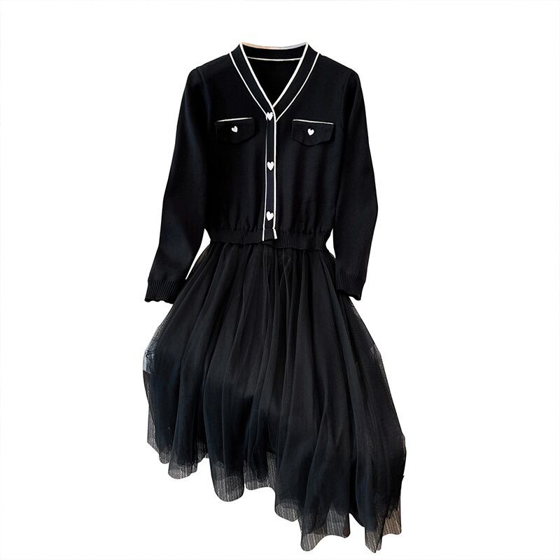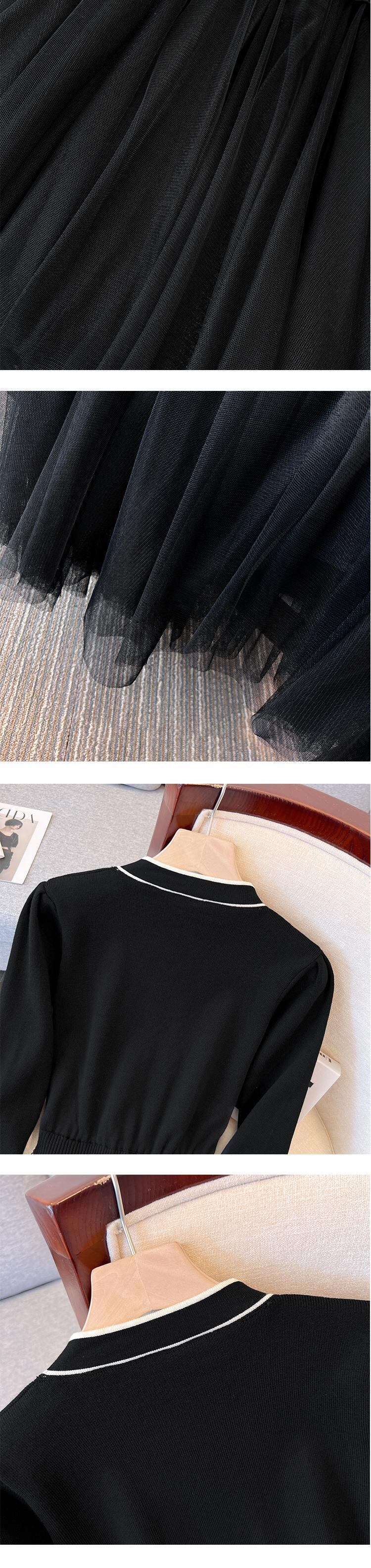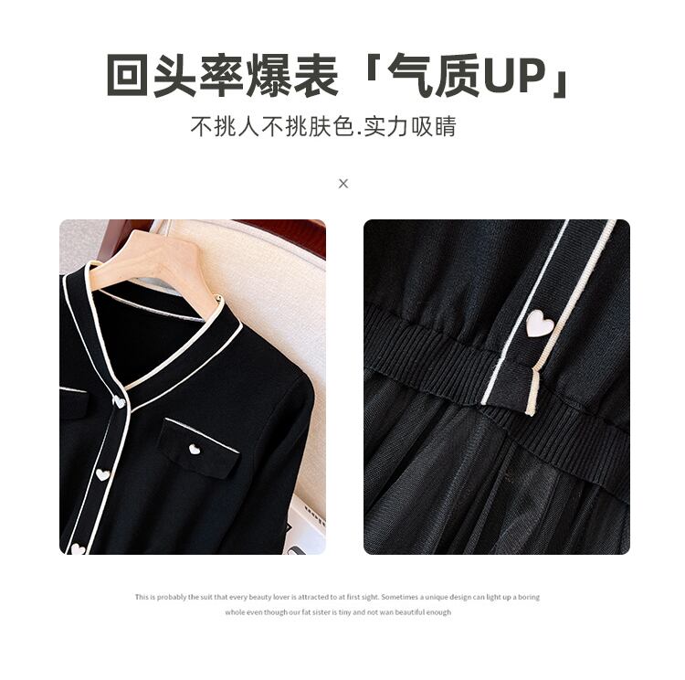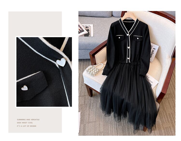 プラスのサイズの婦人服 2023 春の新しいスタイルのファット シスター オールマッチ薄いメッシュ ステッチ デザイン センス ニット ドレス女性 大きめサイズ スプリング 春物 888411316991425