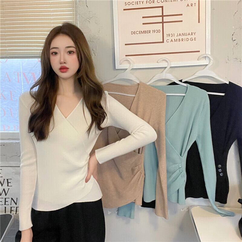 プラスサイズの婦人服 2023 トレンディな女性の春の新しいファットシスター長袖ニットボトムススリムフィット eign スタイルステッチ v ネックセーター ロング 大きめサイズ スプリング 春物 Vネック 8884177300627734