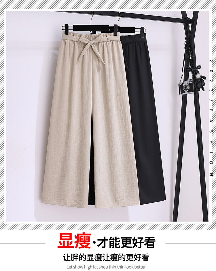 大きいサイズの婦人服 2023 春服 太った姉妹 新しい痩身と年齢を減らすオールマッチ ハイウエスト 薄いセクション ワイドレッグ パンツ クロップド パンツ ハイウェスト 大きめサイズ スプリング 春物 8884181712146063