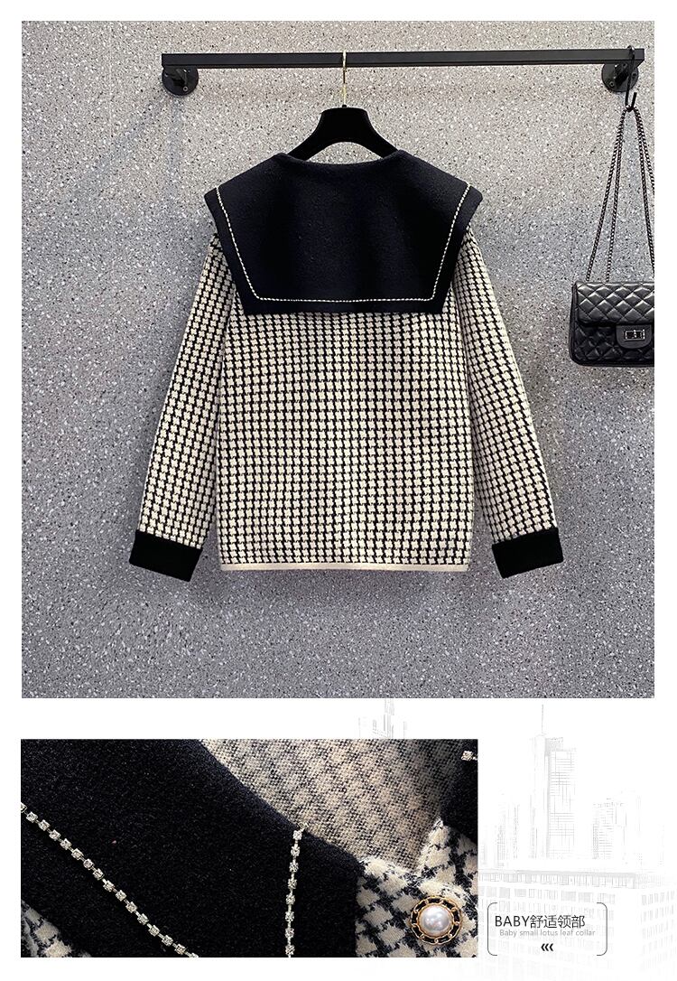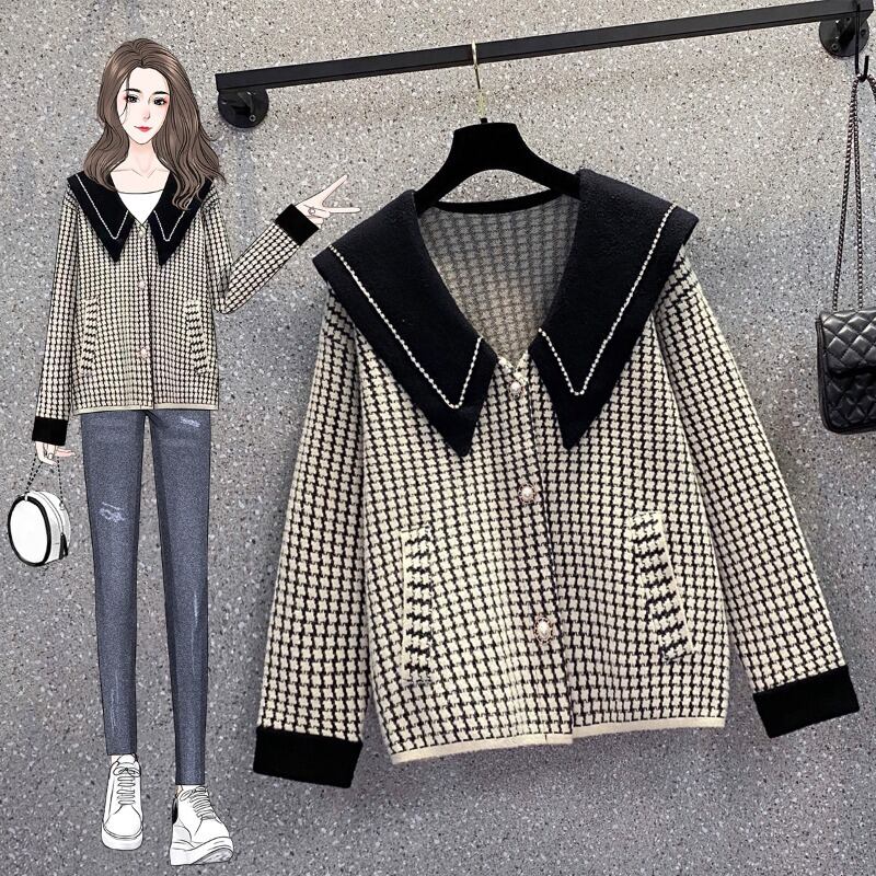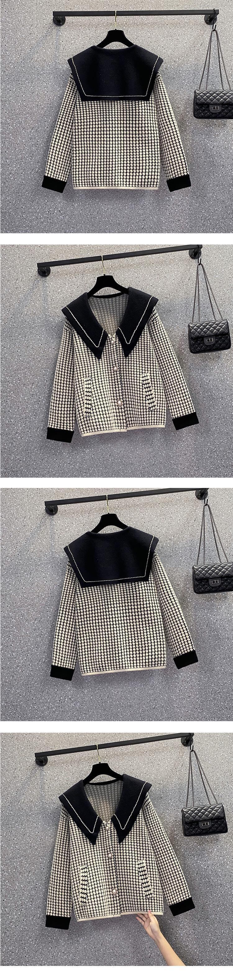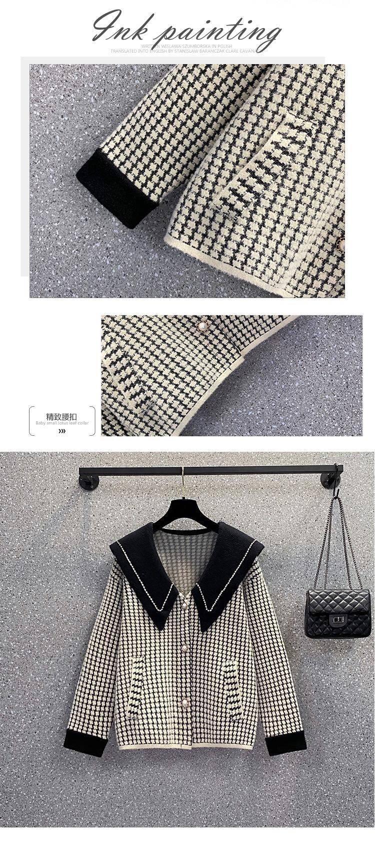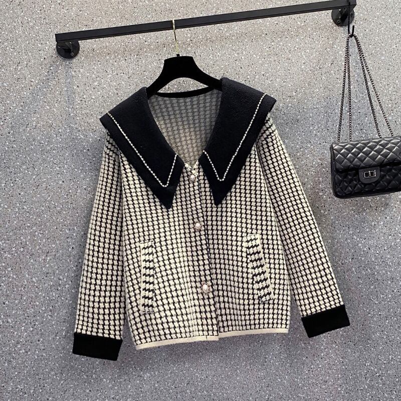 プラスサイズの婦人服2023トレンディな女性の春の新しいファットシスターレトロルーズネイビーカラーファッションオールマッチ千鳥格子ジャケット 大きめサイズ スプリング 春物 8884194485881884
