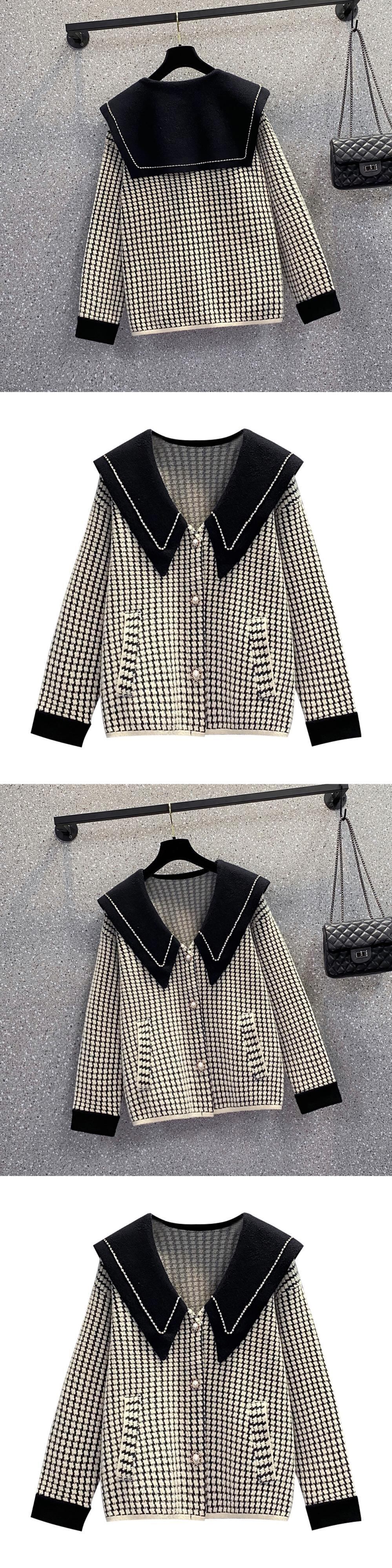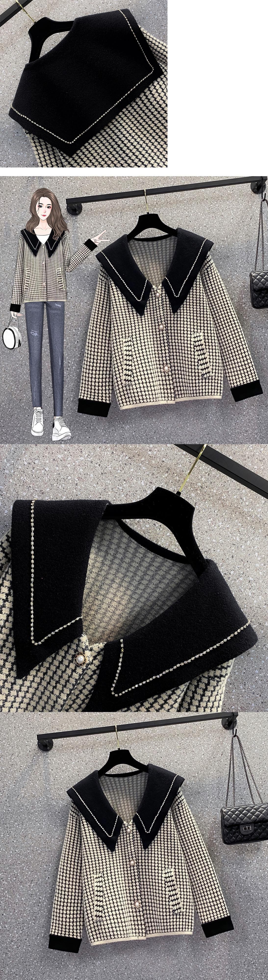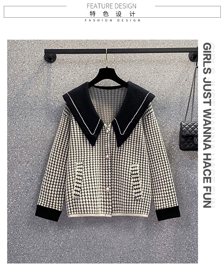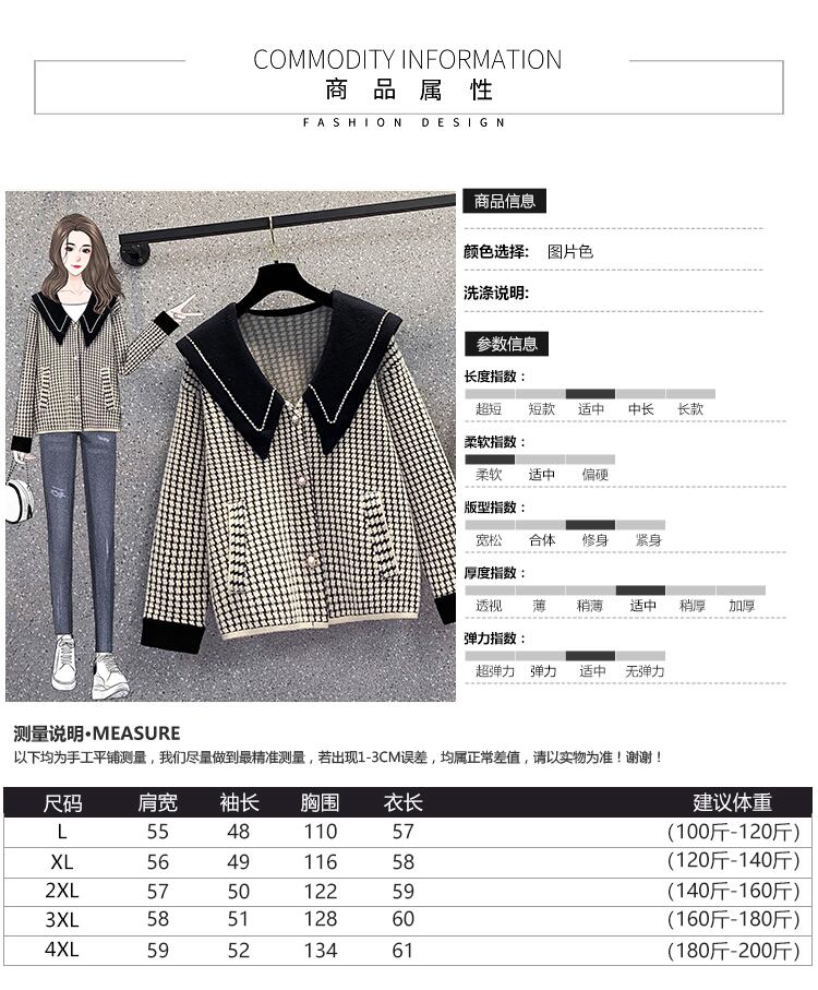 プラスサイズの婦人服2023トレンディな女性の春の新しいファットシスターレトロルーズネイビーカラーファッションオールマッチ千鳥格子ジャケット 大きめサイズ スプリング 春物 8884194485881884