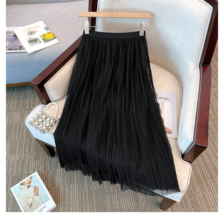 大きいサイズの婦人服 2023 春の新しい脂肪姉妹プリーツ弾性ハイウエスト a ラインヒップカバー気質スカート女性 ハイウェスト エラスティック 伸縮 大きめサイズ スプリング 春物 Aライン 8884149659615123