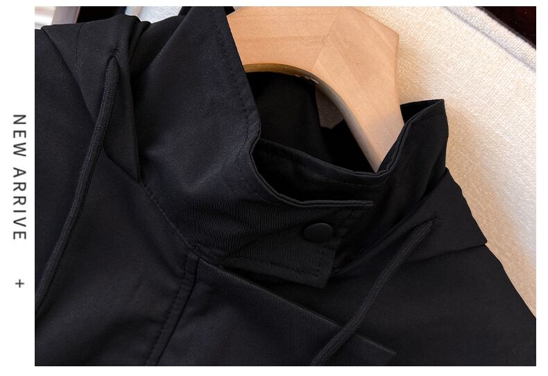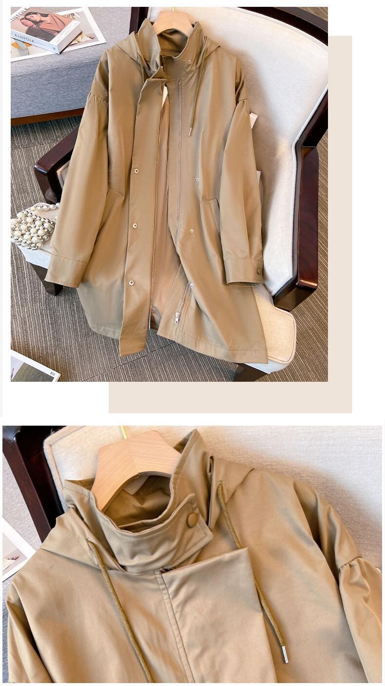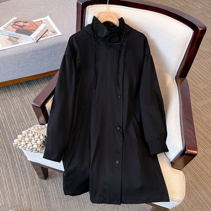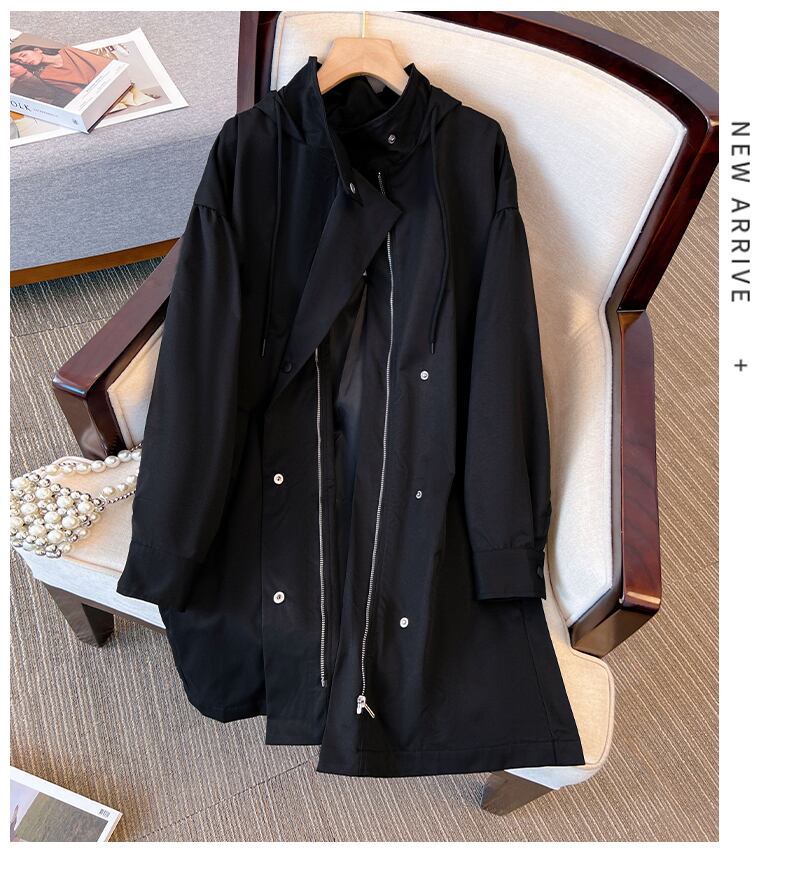 プラスサイズの婦人服 2023 太った姉妹春の新しいフード付き巾着ウインドブレーカー ミッドレングスのゆるい肉を覆うカジュアル ジャケット 大きめサイズ スプリング 春物 8884162067006555