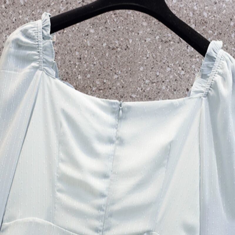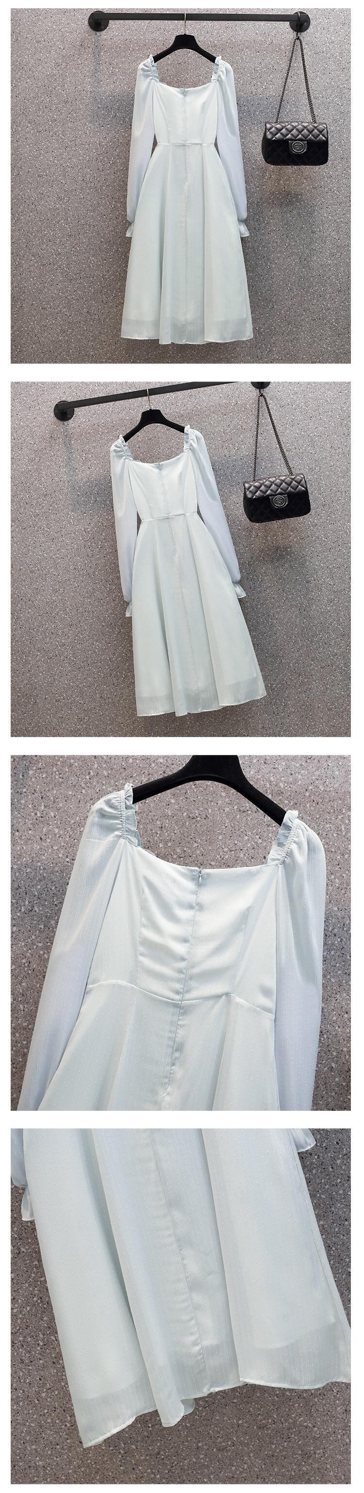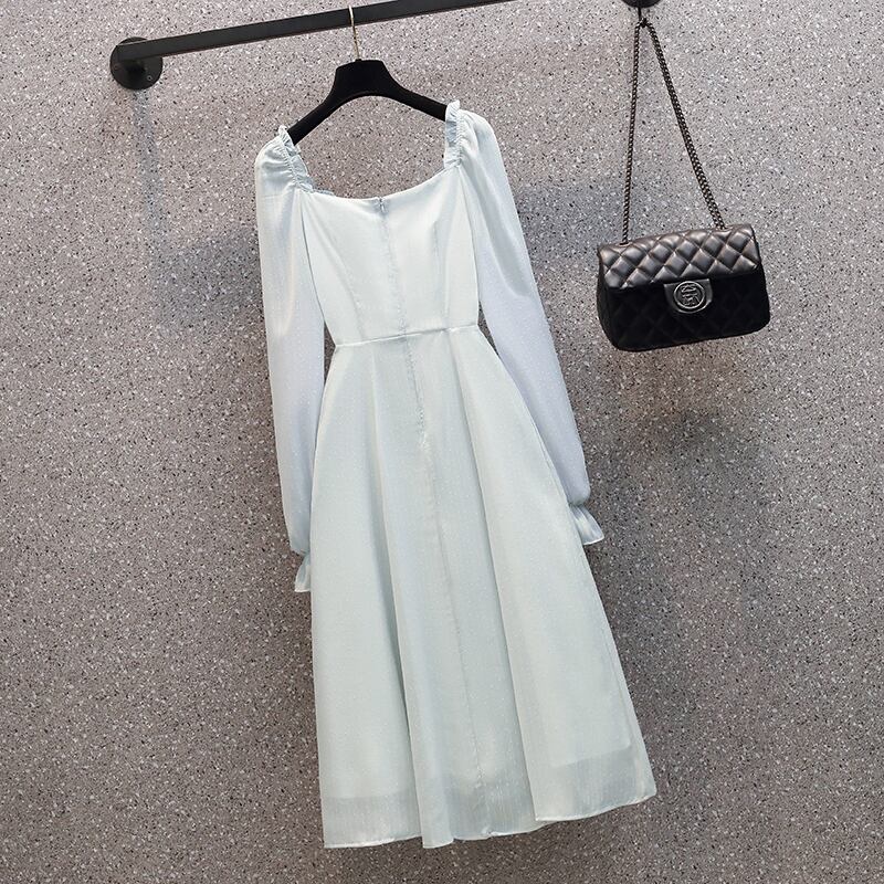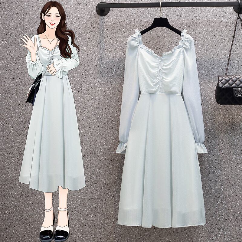 プラスサイズの婦人服 2023 春の新しい太った姉妹年齢削減フレンチ長袖肉カバーウエスト無地ドレス女性 ロング 大きめサイズ スプリング 春物 ソリッドカラー 8884199676658360