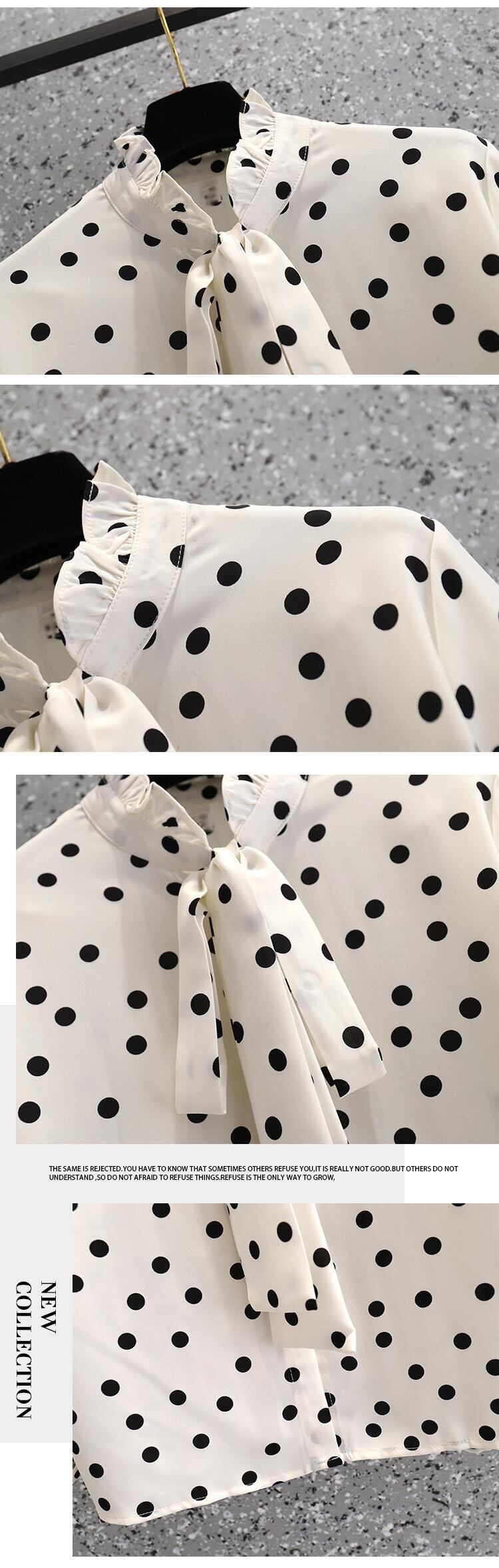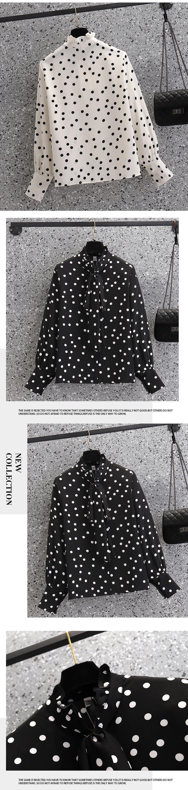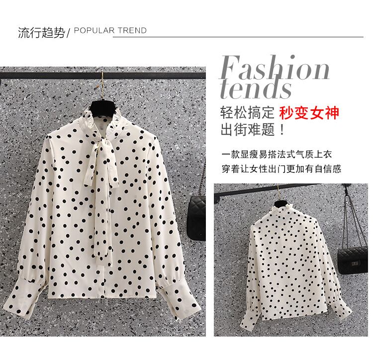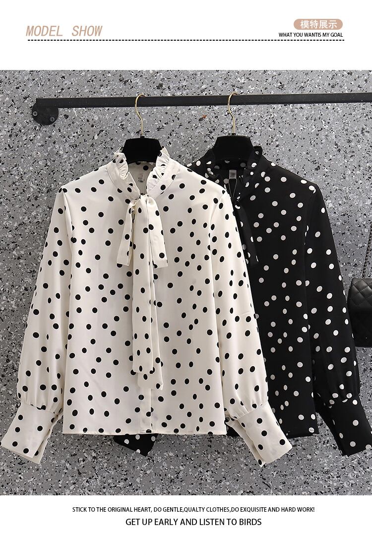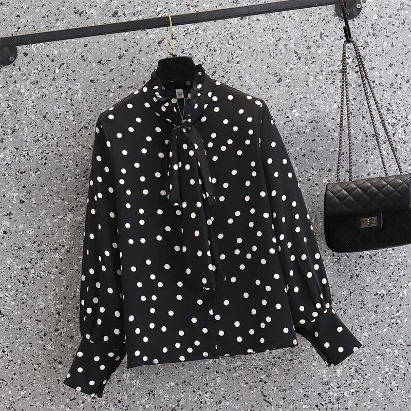 プラスサイズの婦人服 2023 ファットシスター春の新ファッション eign スタイル年齢削減ルーズタイ水玉シャツトップ女性 大きめサイズ スプリング 春物 8884161379672355