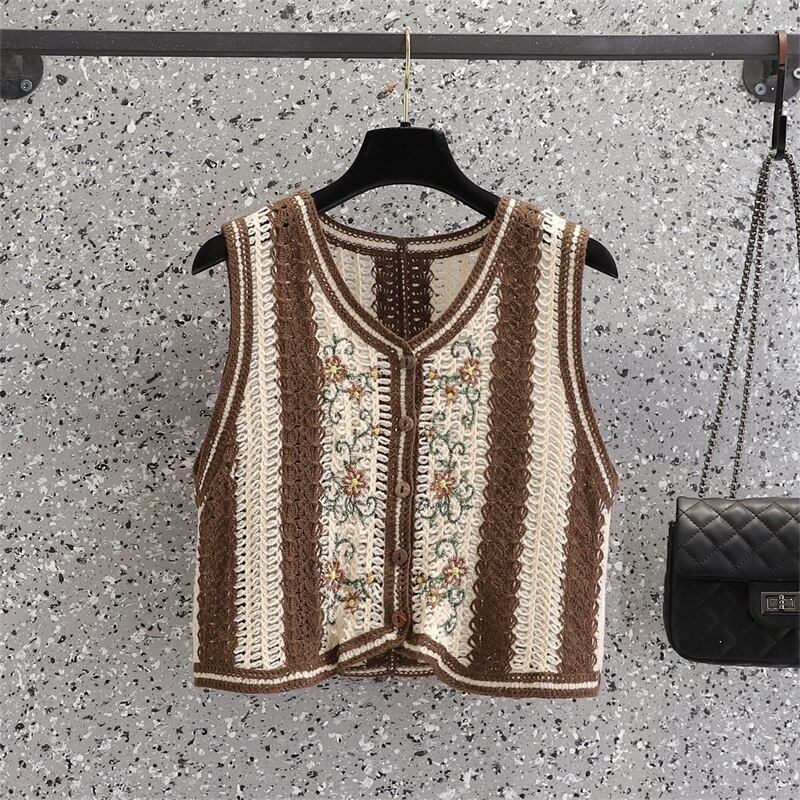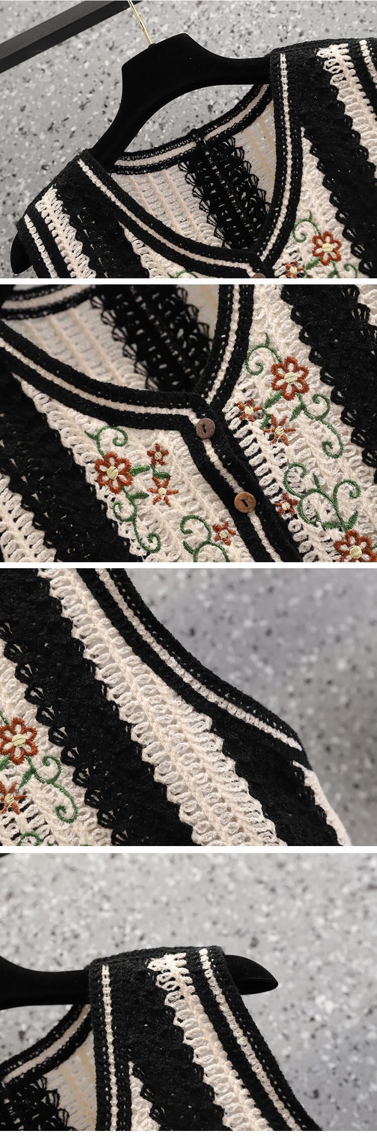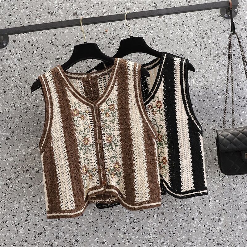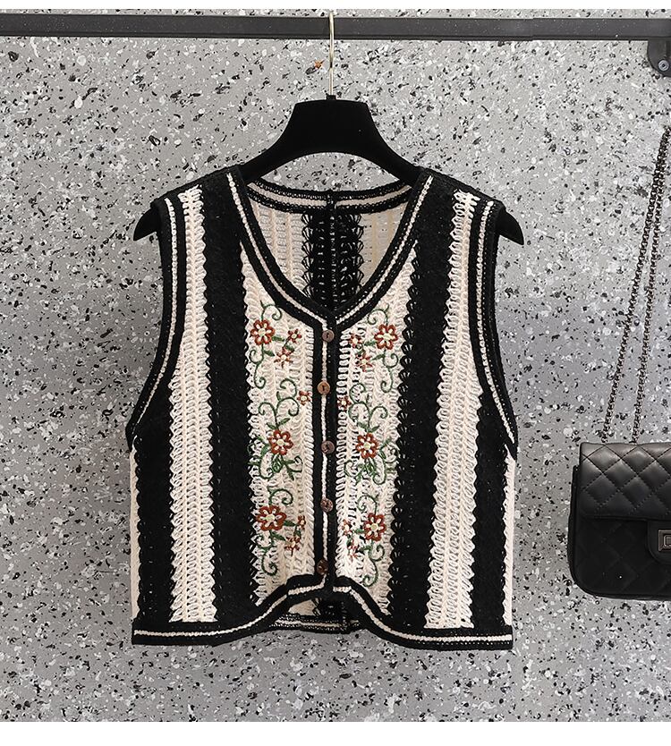 大サイズの婦人服 2023 春服脂肪姉妹新しい刺繍フック花中空ベスト痩身シングルブレストベスト女性 大きめサイズ スプリング 春物 フラワーデザイン 8884141476843780