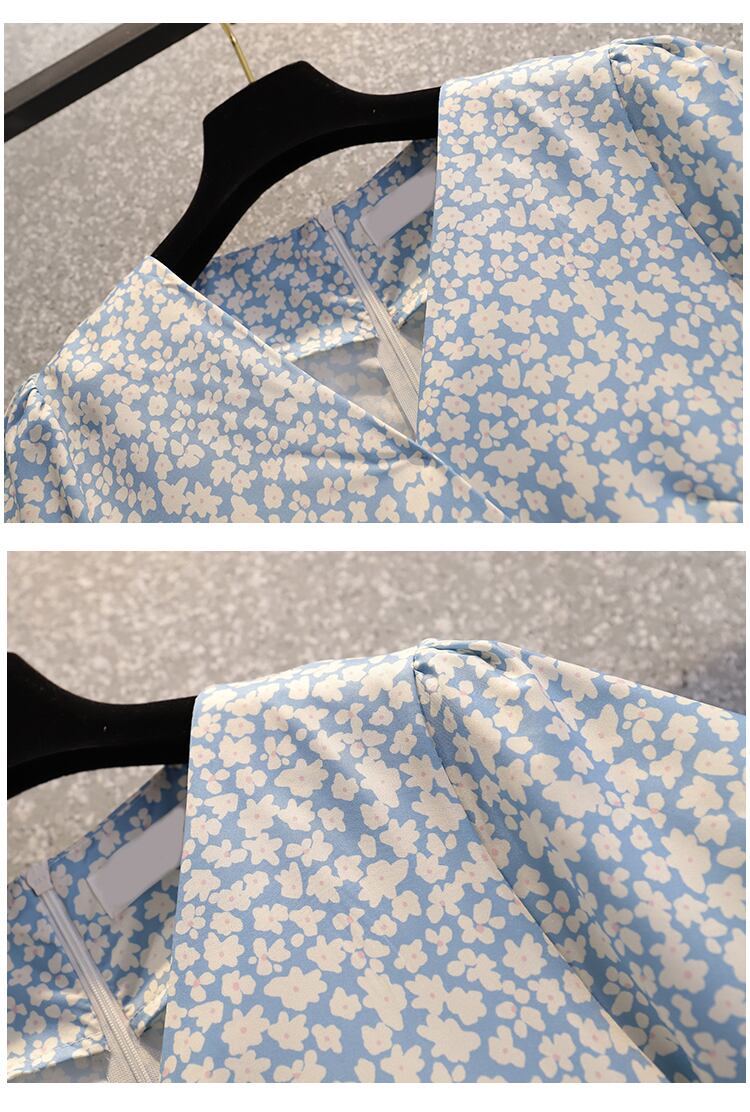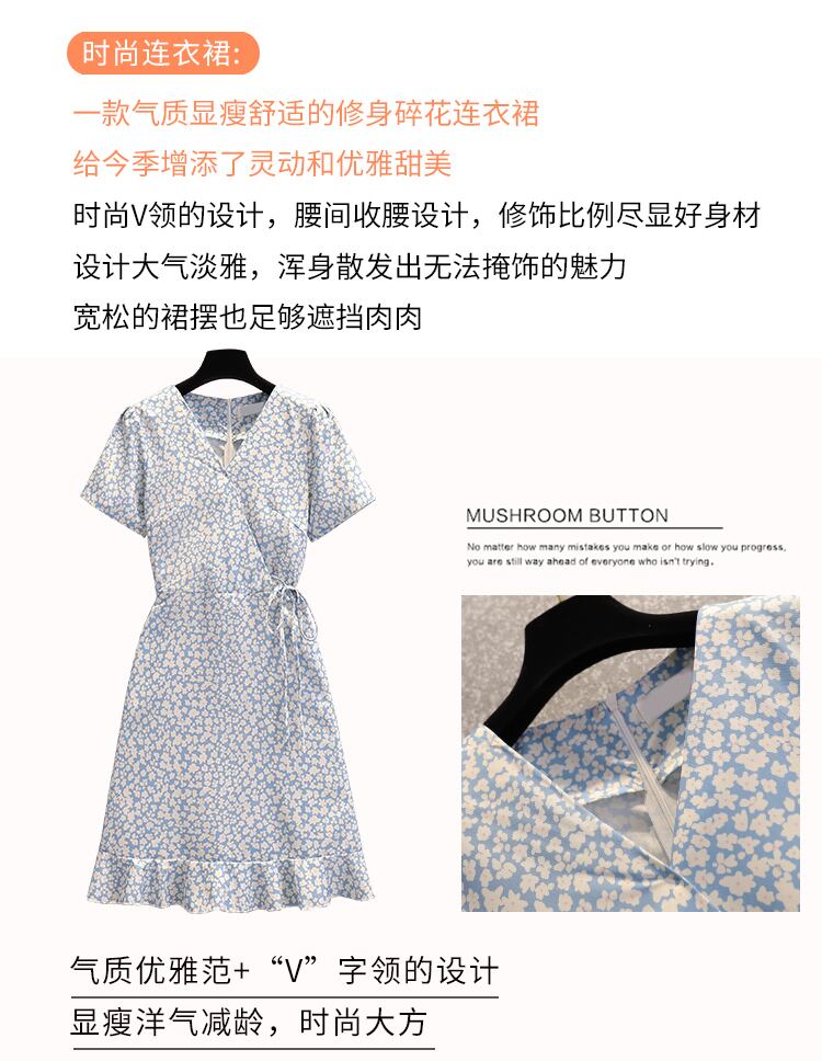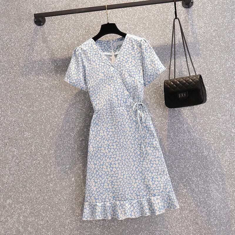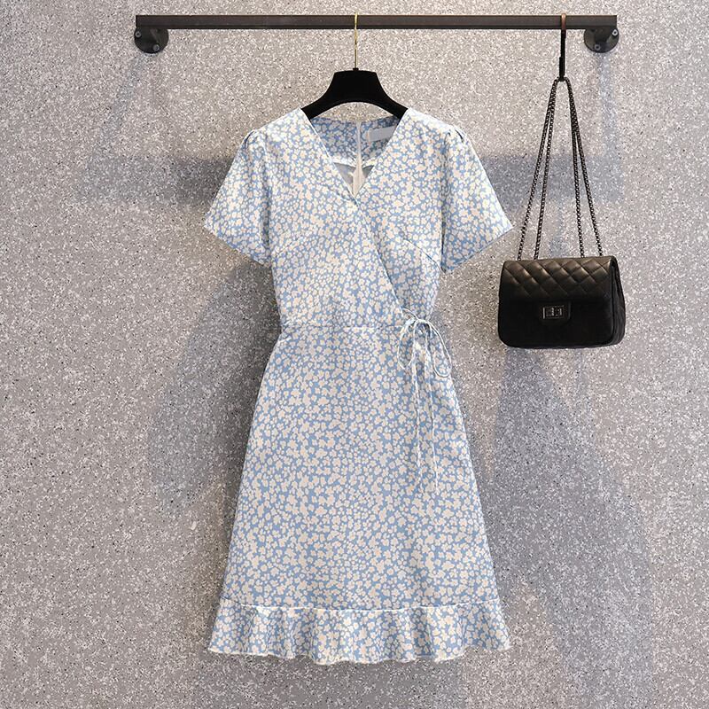 プラスサイズの婦人服 2023 ファットシスター夏新レトロウエスト痩身ネクタイ V ネック花柄ドレス女性 大きめサイズ サマー 夏物 Vネック 8884188168110508