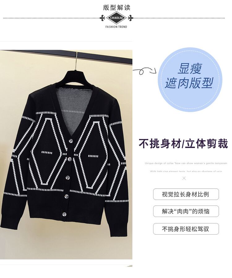 大きいサイズの婦人服 2023 トレンディな女性の春の新しいファット シスター Eign スタイルのゆったりとしたカーディガンを表示し、薄くて肉を覆うファッション ニットウェアの女性 大きめサイズ スプリング 春物 88841546835126