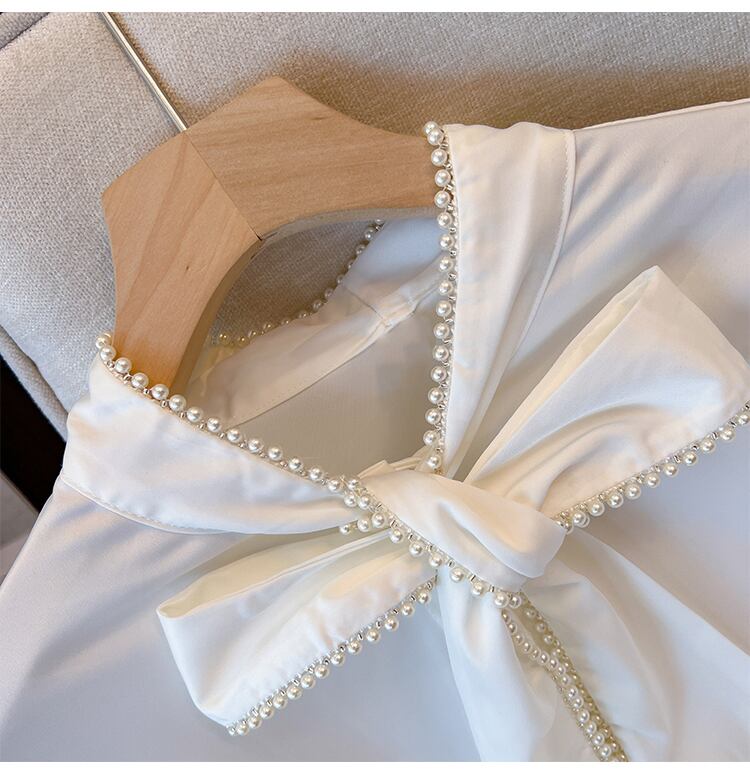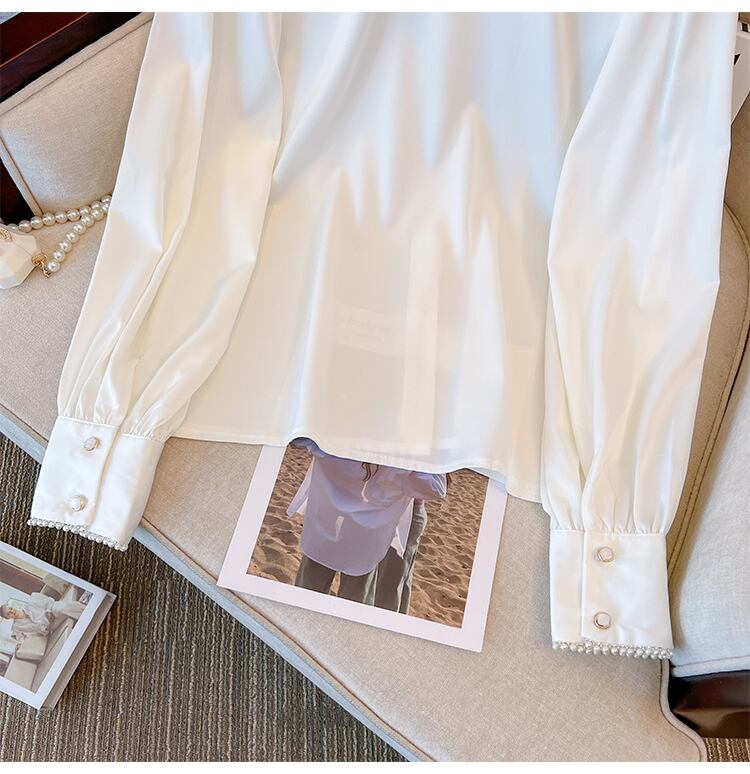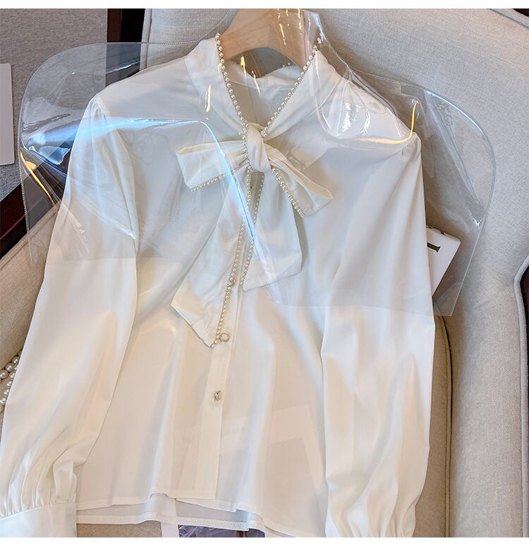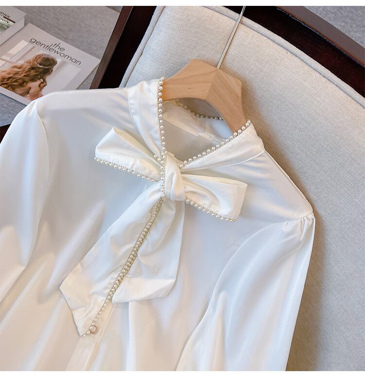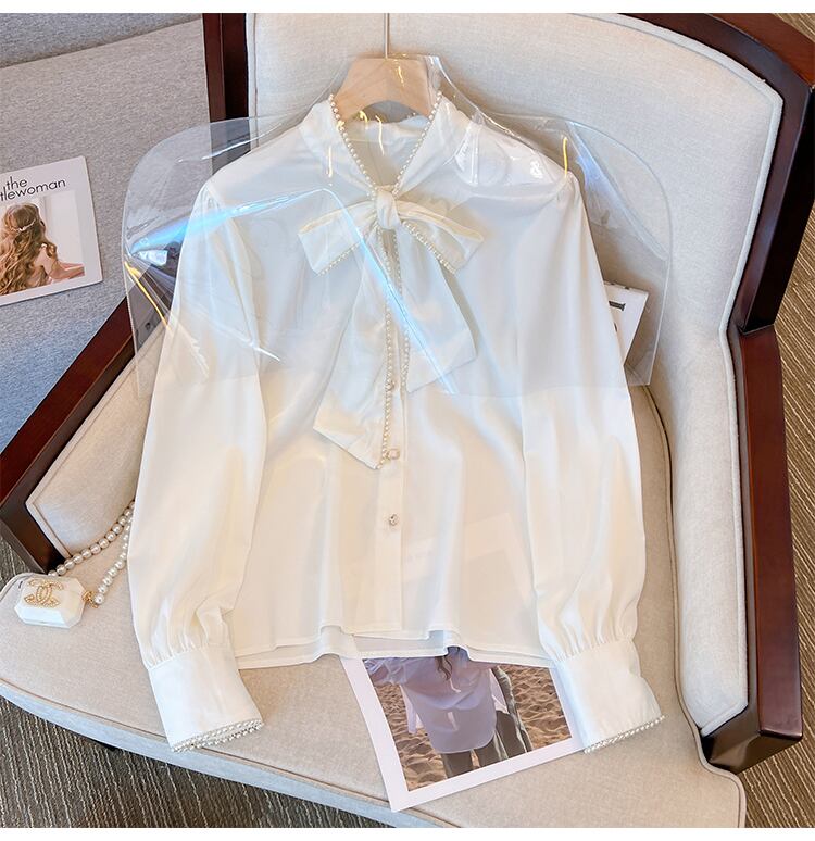 プラスサイズの婦人服 2023 春の新しいファットシスターちょう結び長袖デザインセンスニッチ気質シックなシャツ女性 ロング リボン 大きめサイズ スプリング 春物 8884190407772312