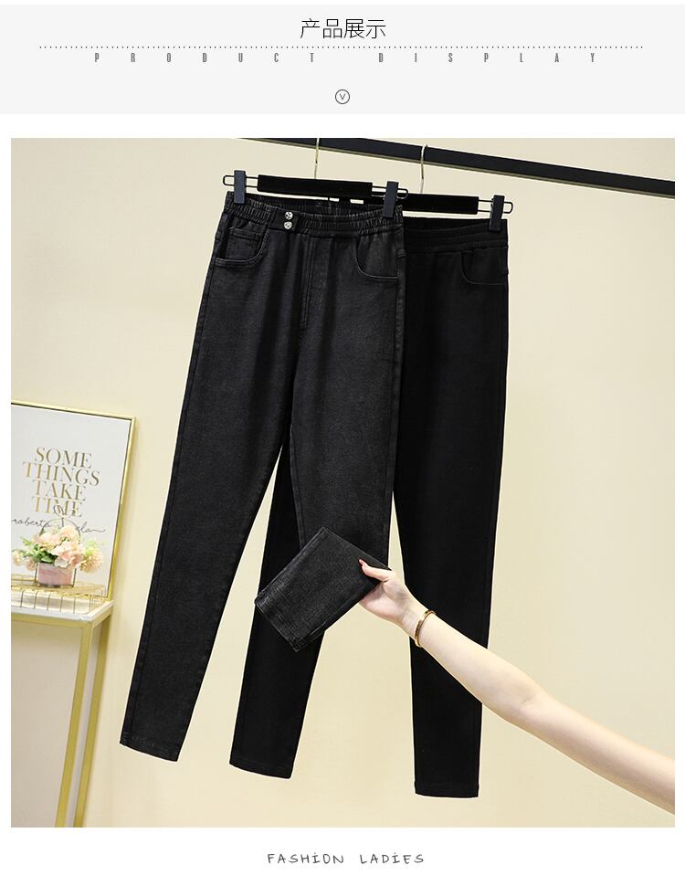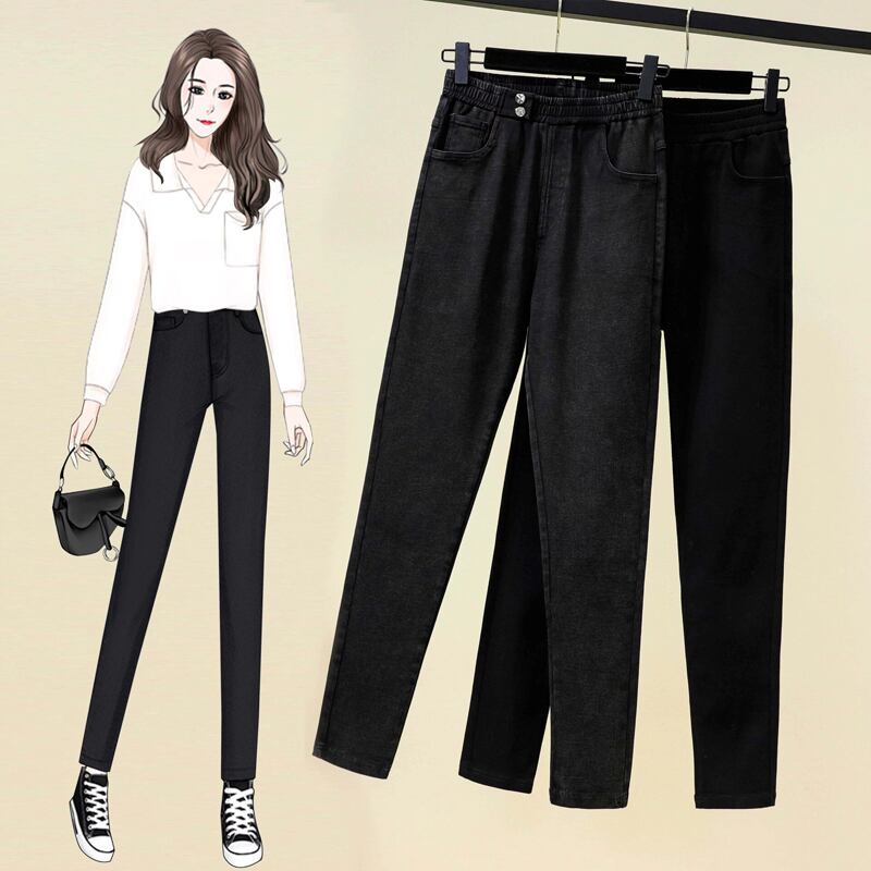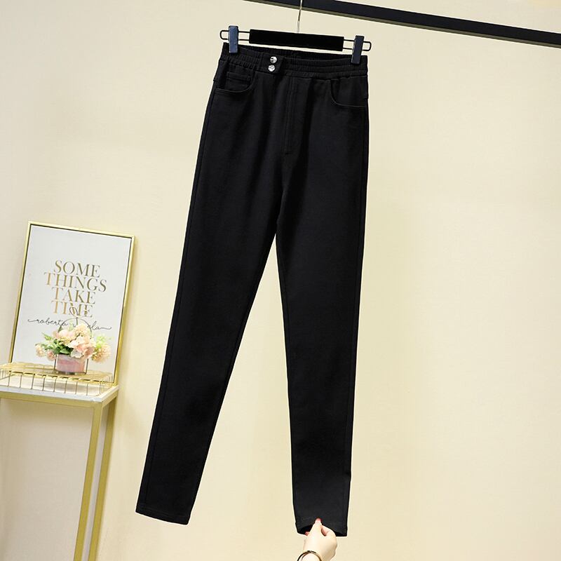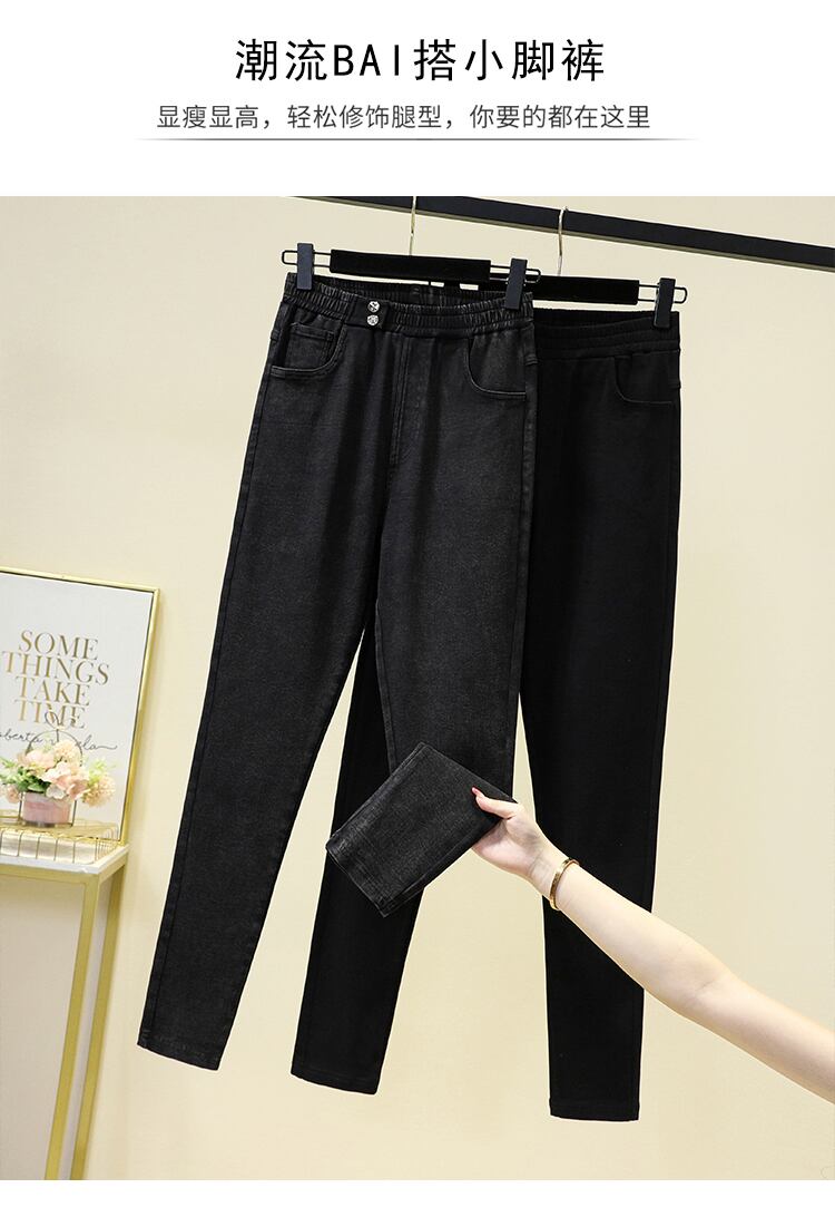 プラスサイズの婦人服 2023 春の新スタイル脂肪姉妹弾性ウエスト弾性ハイウエスト薄型バージョン無地小さな足パンツ ハイウェスト エラスティック 伸縮 大きめサイズ スプリング 春物 ソリッドカラー 8884165616646427