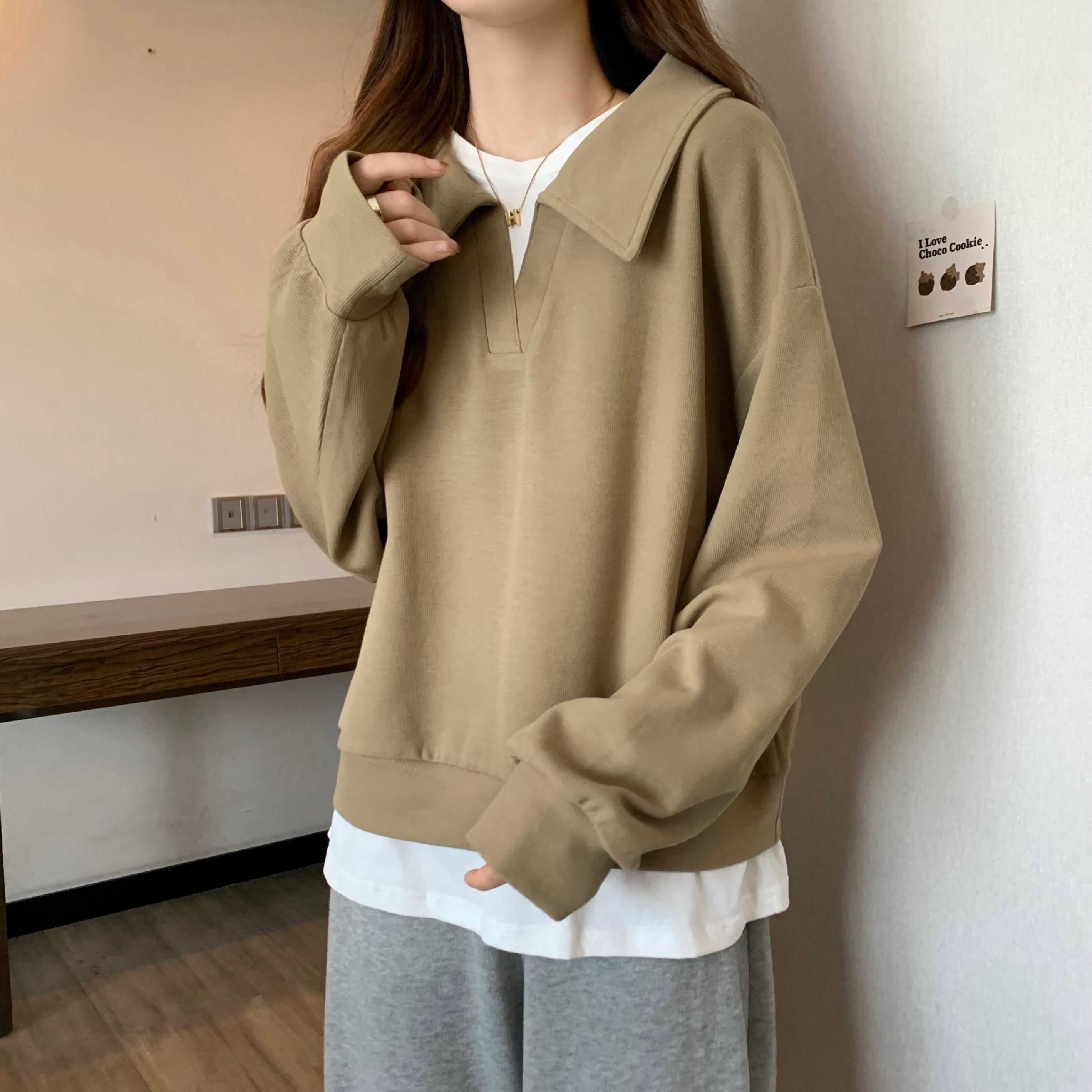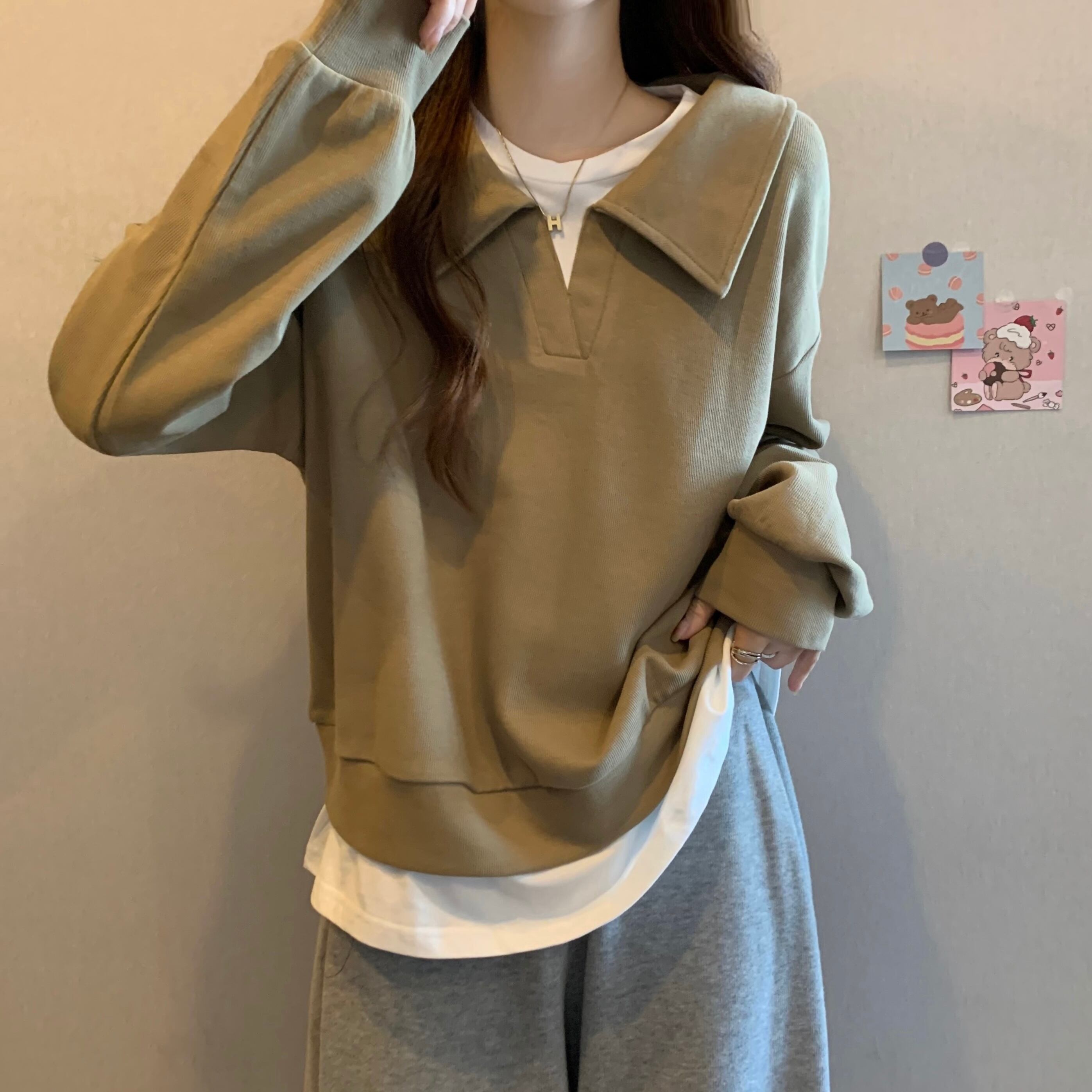 大きいサイズの婦人服 2023 春服ファットシスターズ新しいファッションの年齢を減らすカジュアルなルーズで薄い偽のツーピースのセーターの女性 大きめサイズ スプリング 春物 8884166348362239