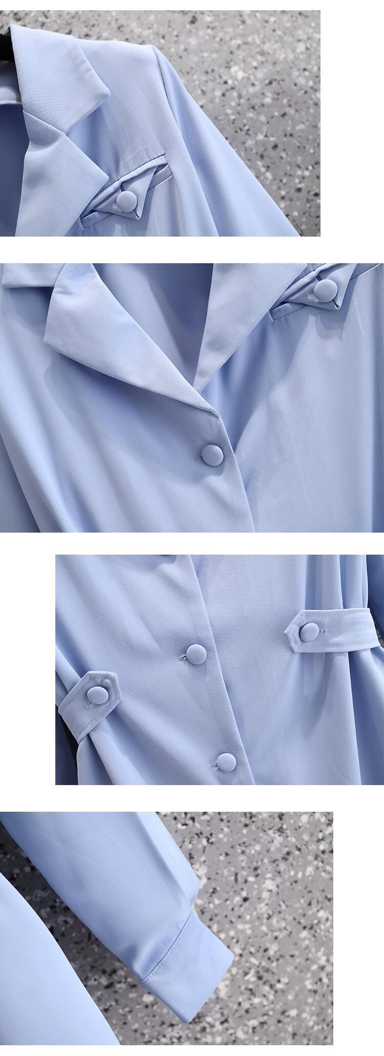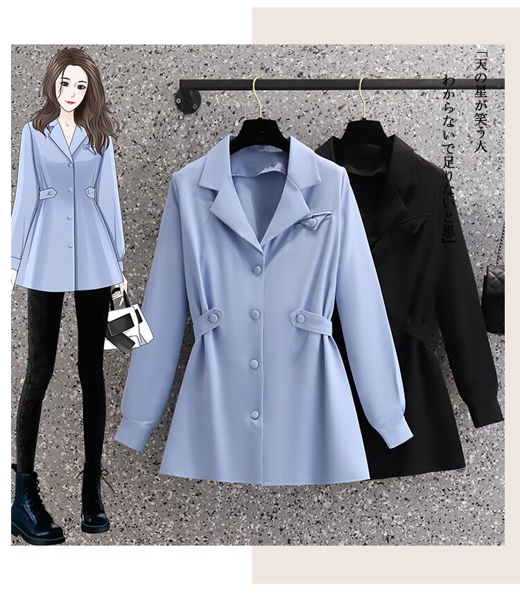 プラスのサイズの婦人服 2023 脂肪姉妹春の新しいファッション ウエスト ウエスト気質中長セクション カバー スパンと薄いスーツ シャツ ロング 大きめサイズ スプリング 春物 8884144528378341