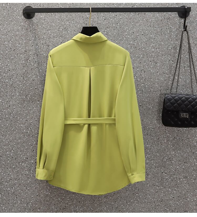 プラスサイズの婦人服 2023 春の新しいスタイルの太った姉妹のカジュアルなデザインの気質不規則なウエストカバーベリーシャツの女性 大きめサイズ スプリング 春物 8884195652194486