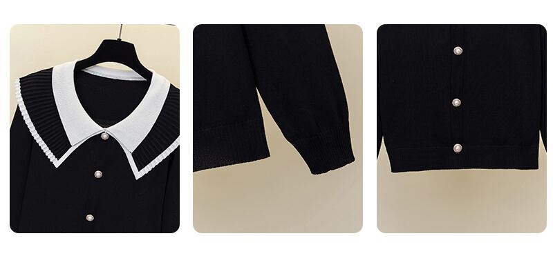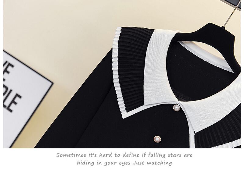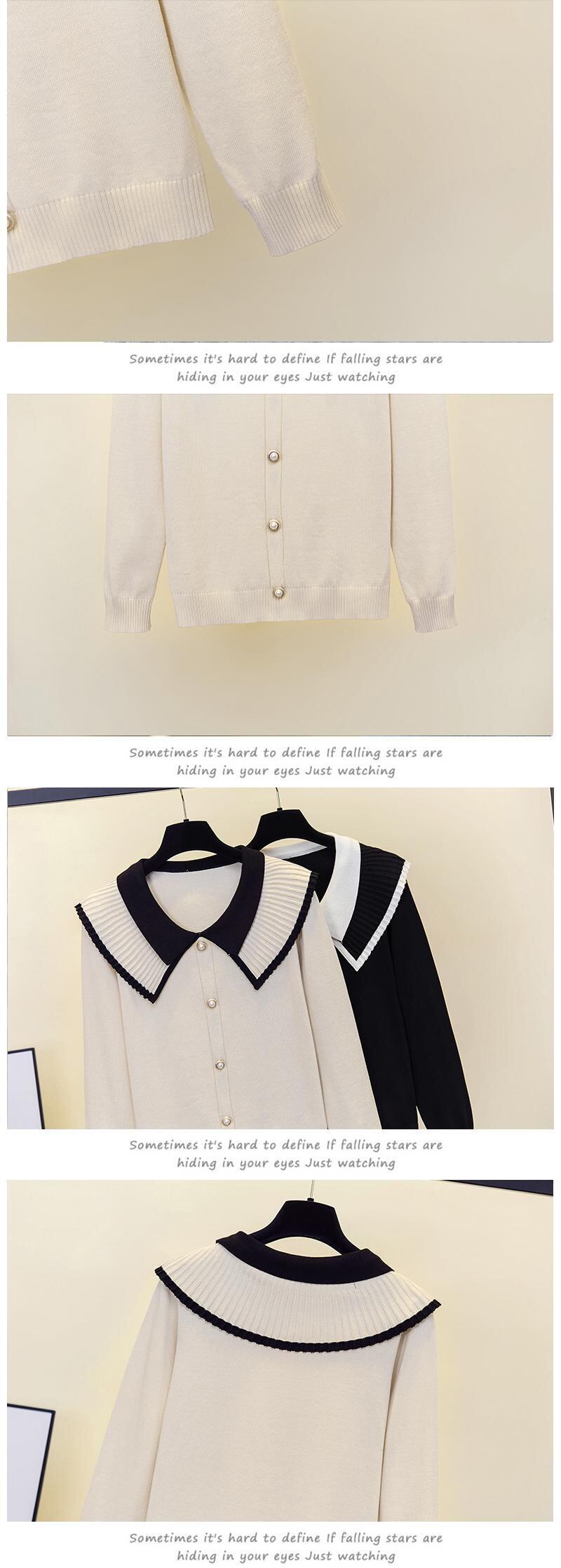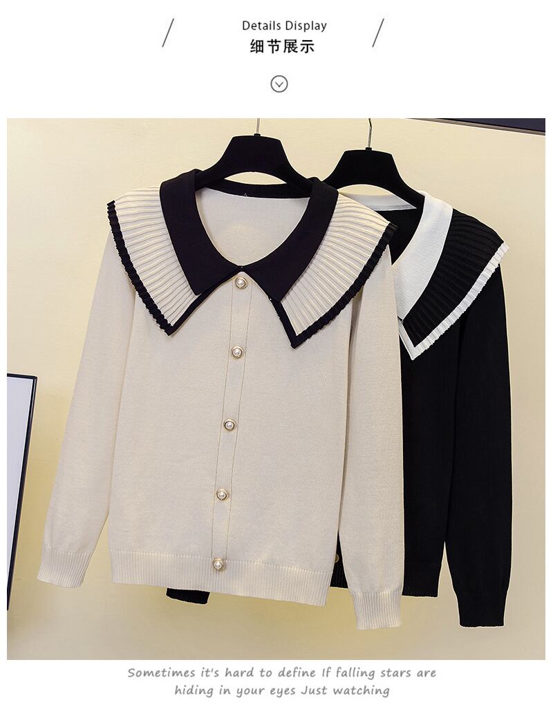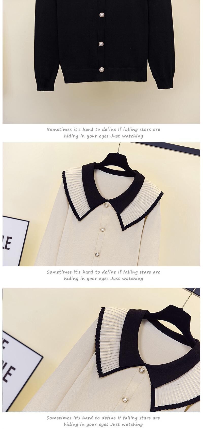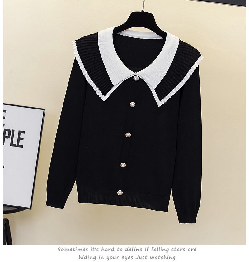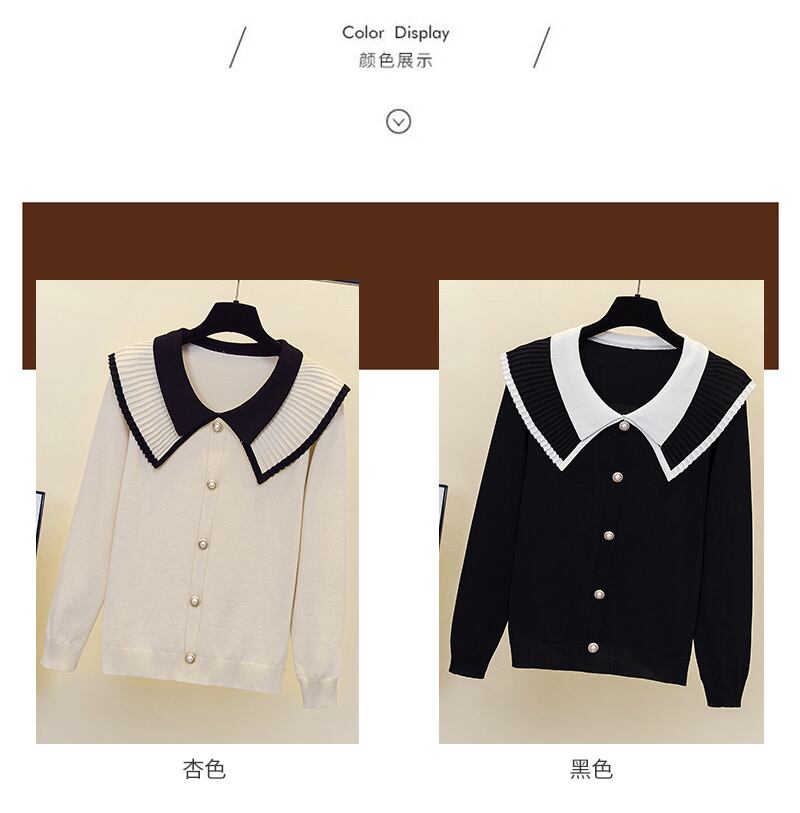 プラスサイズの婦人服 2023 春の新しいファットシスターオールマッチスプライシング人形の襟長袖のシックなルーズニットセーター ロング 大きめサイズ スプリング 春物 8884162908102023