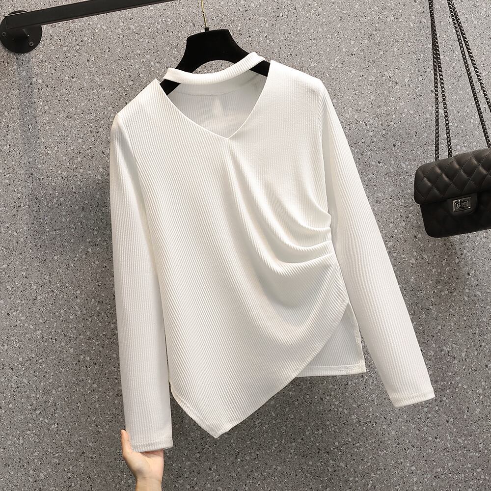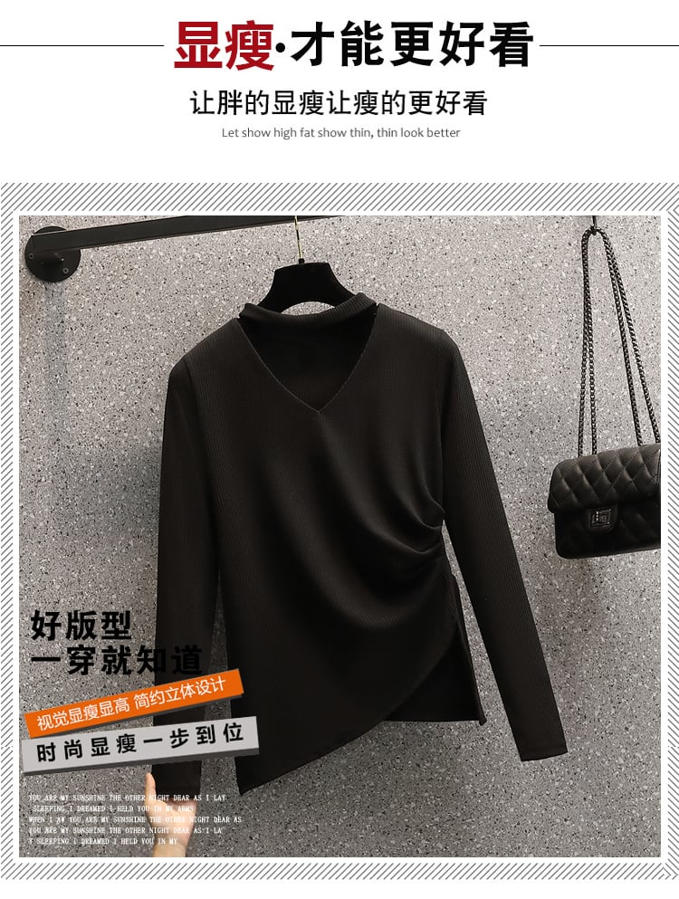 プラスサイズの婦人服 2023 春の新ファッションオールマッチスカーフ非対称スリム eign スタイル長袖トップ脂肪 ロング 大きめサイズ スプリング 春物 8884150031460494