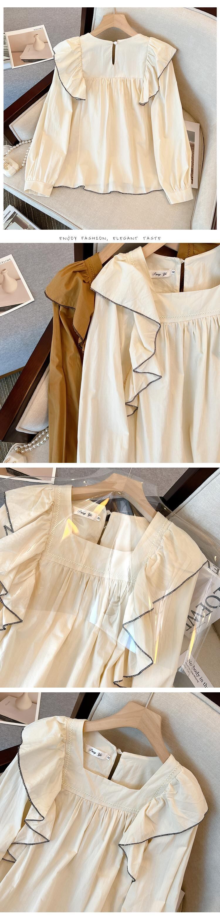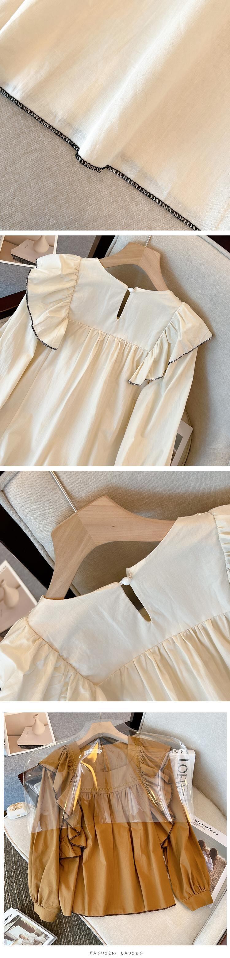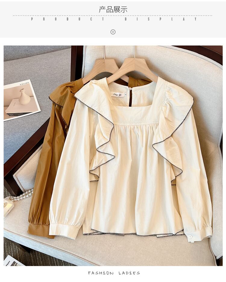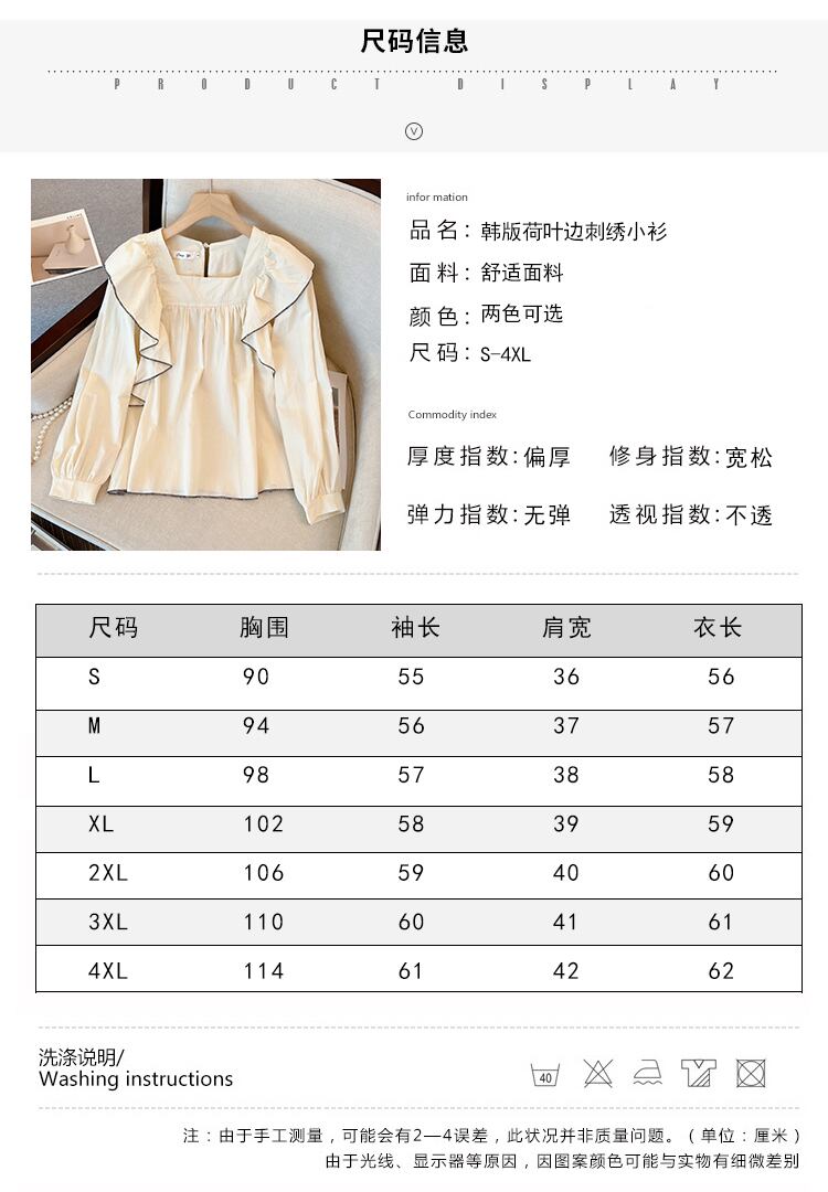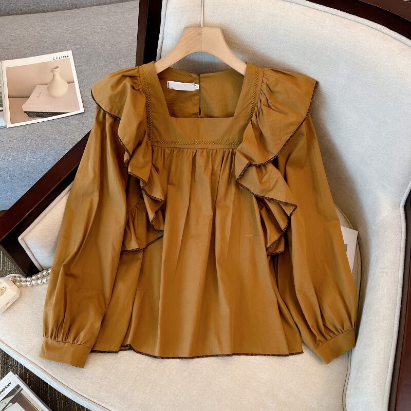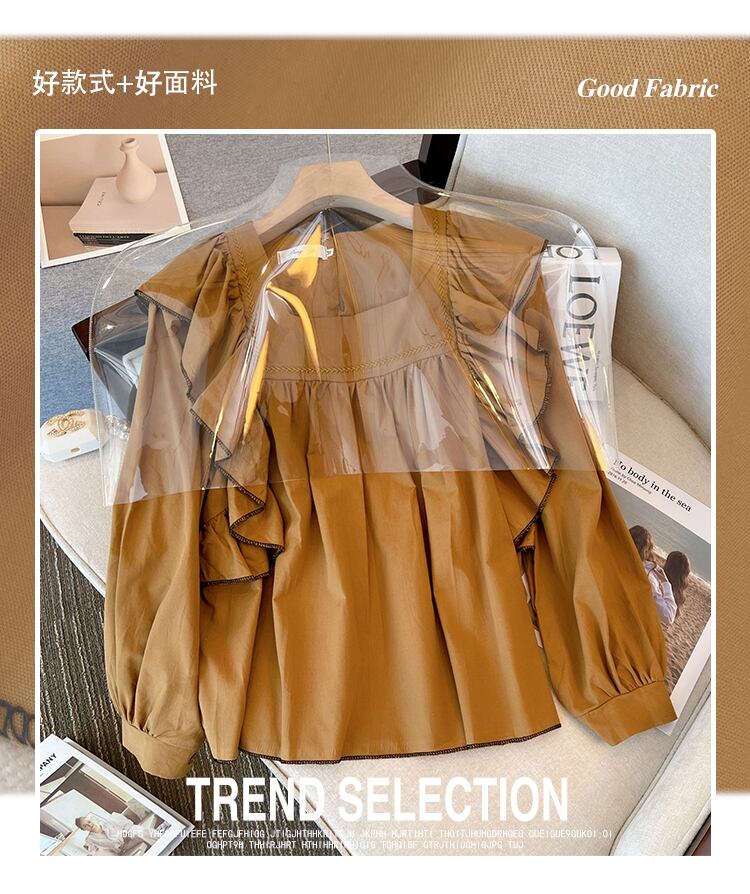 大きいサイズの婦人服 2023 春の新しいファット シスター フレンチ デザイン感フリル パフ スリーブ長袖シャツ腹をカバー ロング 大きめサイズ スプリング 春物 8884142172460792