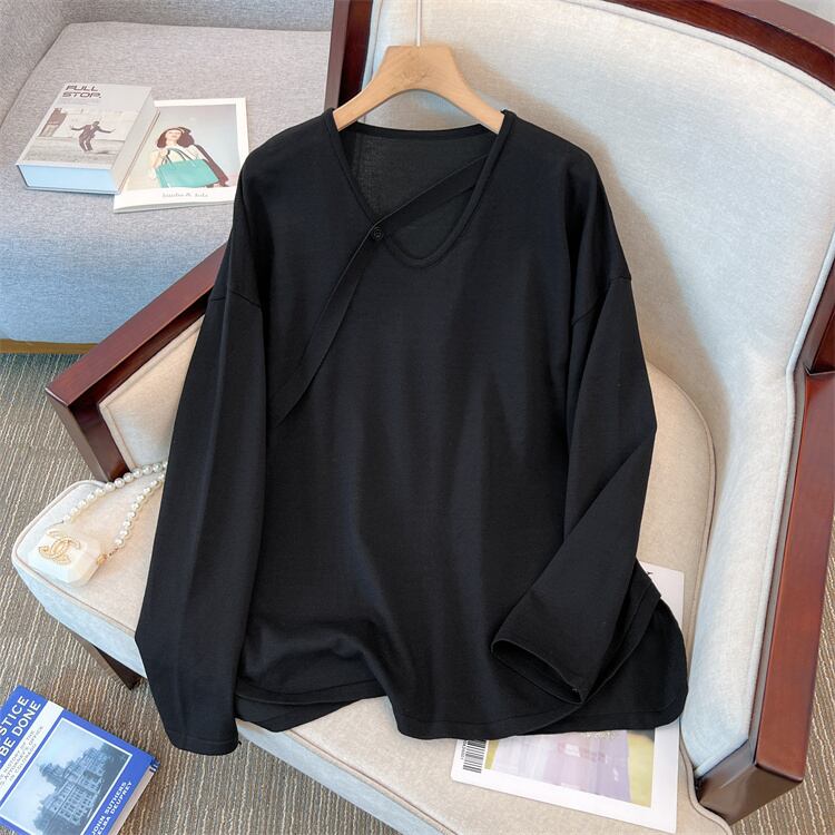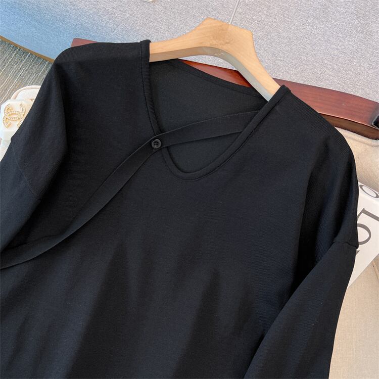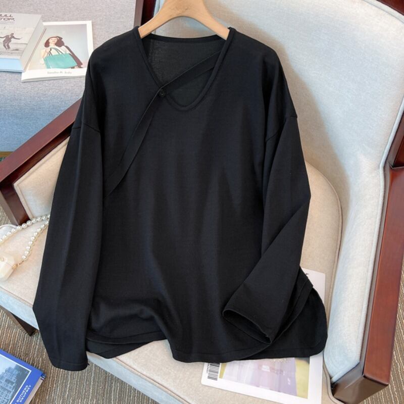 大きいサイズの婦人服 2023 春の新しいファット シスター ファッション V ネック長袖スリット デザイン ストライプ セーター ロング 大きめサイズ スプリング 春物 Vネック 8884168824204936