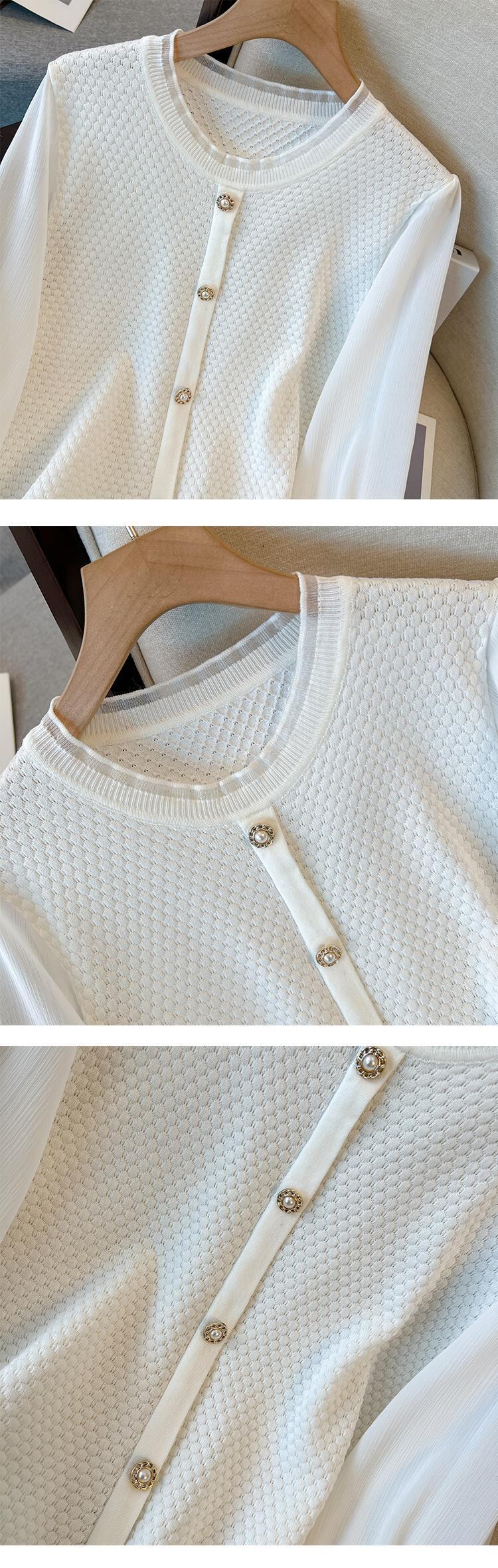 プラスサイズの婦人服 2023 春の新しいスタイルのファットシスターシックな緩いボタン付きファッションオールマッチスプライシングシフォンセーター 大きめサイズ スプリング 春物 8884166619838348