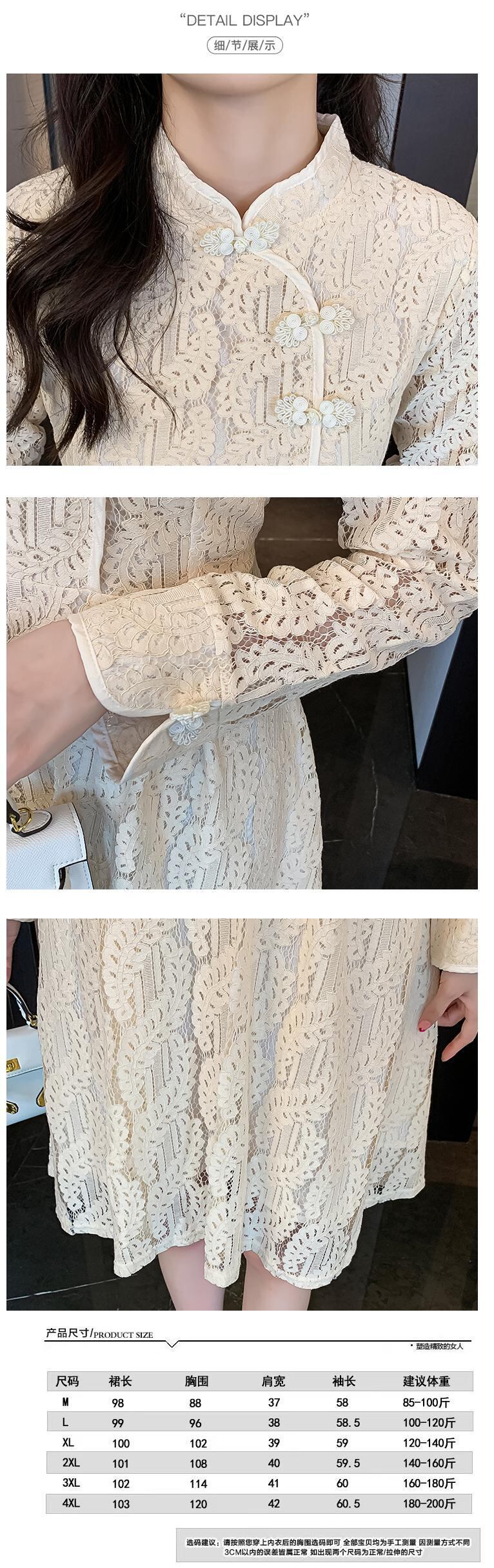 プラスサイズの婦人服 2023 ファットシスター春の新レトロ年齢減少カバーベリー薄型レースバージョンチャイナドレス女性 大きめサイズ スプリング 春物 8884153511987824