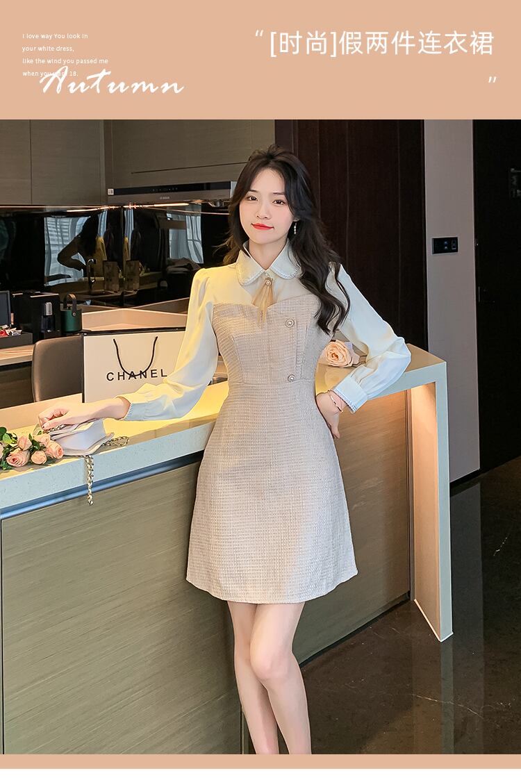 プラスサイズの婦人服 2023 脂肪姉妹春の新しいフレンチスタイルの年齢を減らすウエスト痩身ボトミングスカート長袖ドレス女性 ロング 大きめサイズ スプリング 春物 8884125037205262